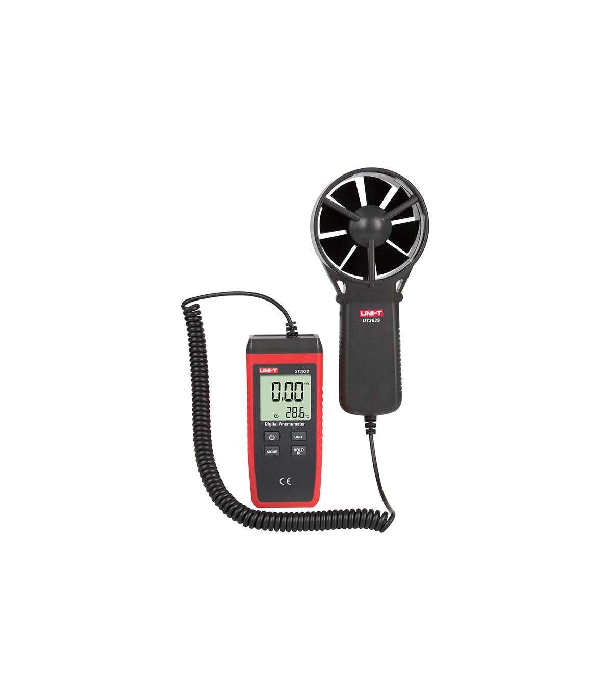 UNI-T UT363S is an advanced digital anemometer with a separate sensor on a cable, which is distinguished by high precision measurement and convenient operation. Thanks to its refined design, it is possible to measure wind speed and temperature even in hard-to-reach places - such as ventilation ducts, machine housings or fan outlets. The device was designed for industrial and professional applications,among others. in power generation, mining, metallurgy, chemical industry, ventilation, sports and production of cooling equipment.