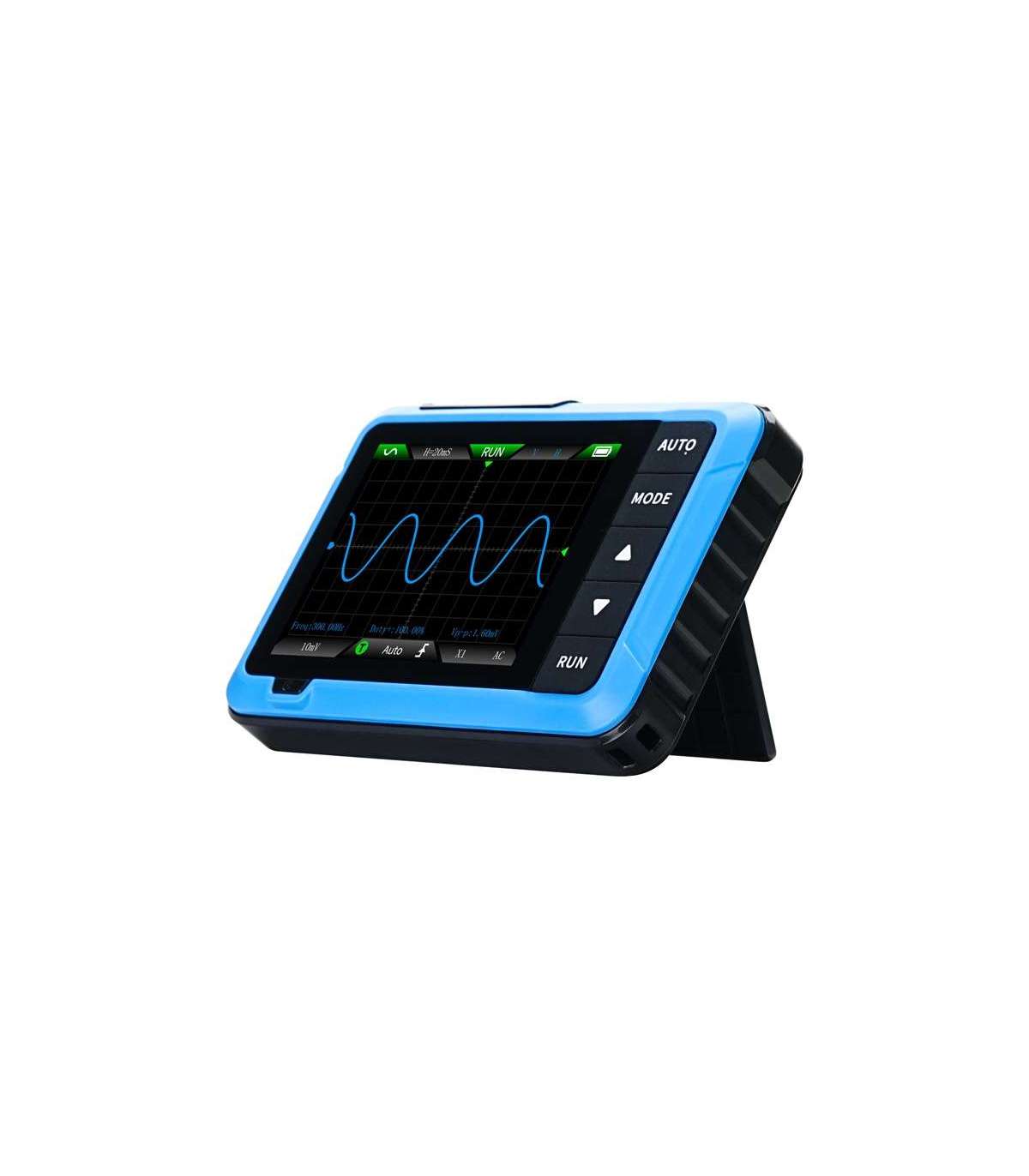 The FNIRSI DSO510 is a portable 2-in-1 oscilloscope and signal generator with a 10 MHz bandwidth that combines compact size with advanced functionality. The device offers intelligent functions such as automatic adjustment, surge protection, trigger level display and image recording capability. With its adjustable glow, it enables efficient tracking of transients, and supports stopping, zooming and panning of waveforms for precise analysis. The built-in generator offers 13 waveforms, supporting learning and testing. The compact size and foldable stand provide convenience in any environment. The device works well in measuring line voltage, pulse signals and other waveforms. Long operating time is guaranteed by a 1000 mAh battery, charged via a USB-C port. It is an excellent choice for both professionals and electronics enthusiasts.