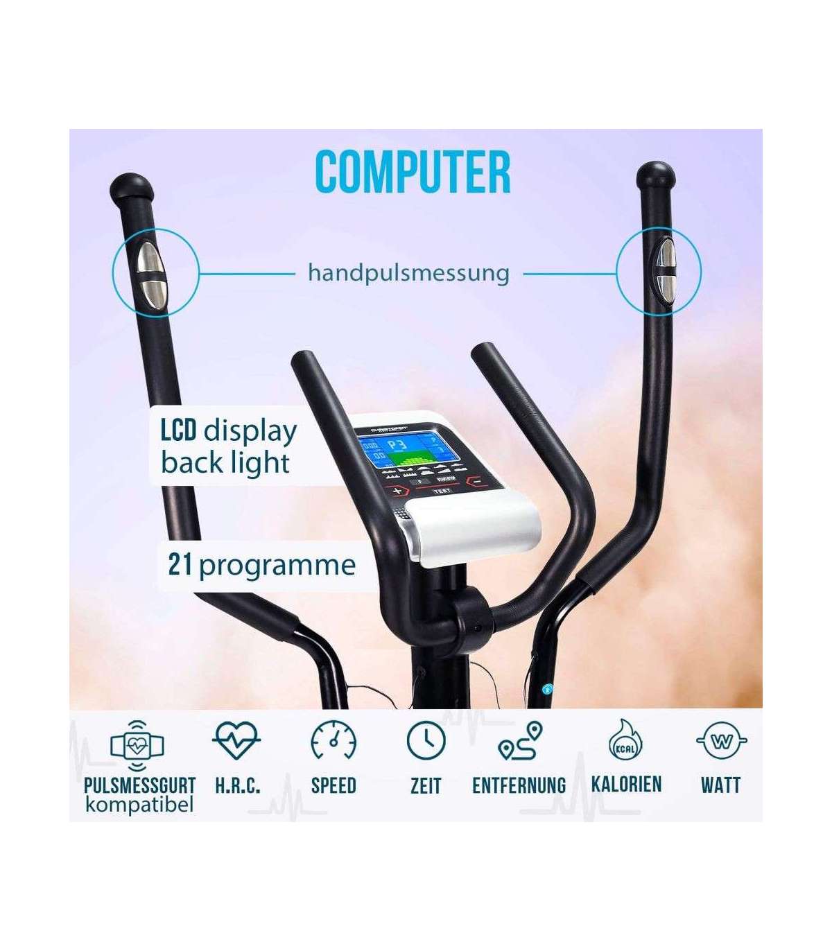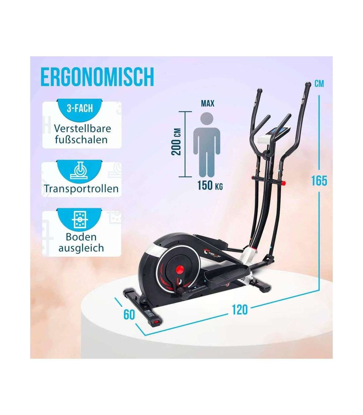 Elliptiline trenažöör Christopeit AX 8000 on usaldusväärne ning vastupidav trenažöör, mis on sobilik inimestele kaaluga kuni 150 kg. Elliptilise trenažööriga on võimalik treenida kogu keha hoolimata tuulest, vihmast või kellaajast. Treenitud saavad jalad ning tuharalihased, kuid ka käed, õlad ning selg. Sammupikkus 30 cm tagab naturaalse ning leebe liikumise. Hooldusvaba magnetiline pidurisüsteem ning vaikne töö koos 8 kg-se hoorattaga tagavad sujuva töö. Kinomap rakendus on ühendatav Bluetoothi kaudu.Seade on sobilik kuni 200 cm pikale inimesele.Tootja on: Christopeit (Saksamaa).Täpsemalt:Pulsi mõõtmine käepidemete kaudu. Ühildub ka Bluetooth pulsivööga.Treeningprogramme: 21Raskusastmeid: 24Pidurisüsteem: PMS, servomootorHooratas: 8 kgSammu pikkus: 30 cmToote kaal: 32 kgMõõdud: 120 x 54 x 162 cmMaksimaalne kasutajakaal: 150 kg
