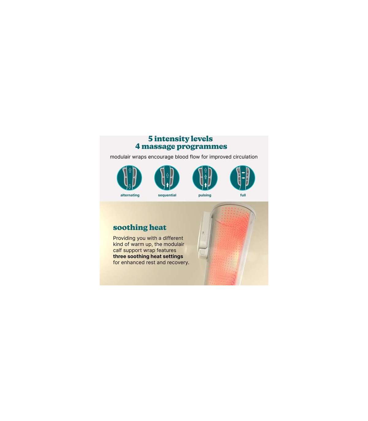 Kolm kuumuse seadistust ja kaks aktiivset kompressioonitsooni: kohandatud massaažikogemuse jaoks.