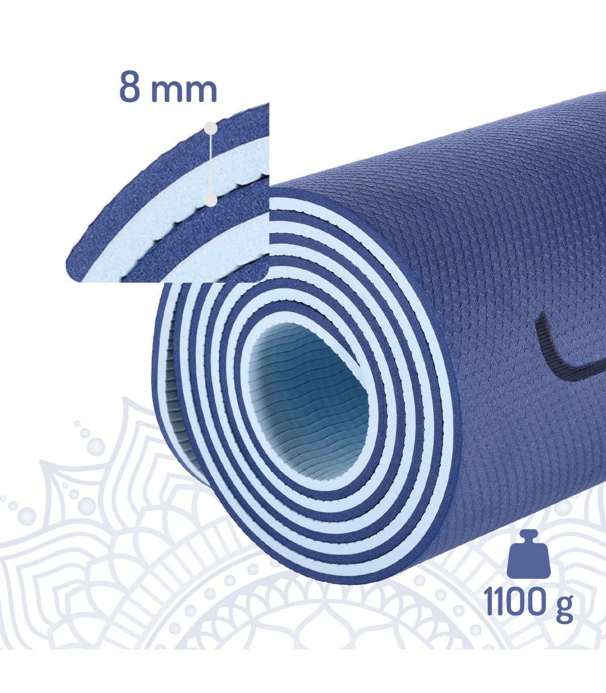 YM10 YOGA MAT DARK BLUE TPE HMSThe YM10 yoga mat from HMS is the perfect choice for all lovers of physical activity. Made from high quality TPE material, it offers exceptional softness and excellent cushioning, providing comfort and support during every exercise. Thanks to the included straps, the mat is easy to carry and is perfect for both indoors and outdoors.Versatility and functionalityOur mat is ideal for a variety of physical activities. Whether you do yoga, aerobics, stretching, cardio, pilates or other forms of exercise, the mat will provide the right support and comfort. Thanks to its design and features, the mat is suitable for both intense workouts and relaxing exercises. Its dimensions (182 x 61 x 0.8 cm) are ideal for yogis of all levels.Comfortable training thanks to the best materialsThe mat is made of double TPE material, which is known for its reliability and durability. TPE, a thermoplastic elastomer, offers excellent grip, making the mat non-slip and safe to use. In addition, thanks to its elasticity and shape memory properties, the mat returns to its original form after bending or intensive use, ensuring that it resists distortion and maintains its expected appearance over the long term. The material is also waterproof, making it easy to care for and clean. This makes the mat from HMS ideal for both indoor and outdoor exercise.Choose your designThe YM10 is available in a wide range of colours and designs that are sure to appeal to even the most demanding users. Choose from muted, classic shades or striking, energetic colours to energise any workout. Our original designs will make your mat stand out, catching the eye of those around you. The patterns on the mat not only give it a unique look, but also serve as an aid to positioning during exercise.Compact size and convenient transportationThe exercise mat is not only functional, but also easy to carry. Its compact size when folded and the included transport straps make it convenient to take it with you to the gym, park or outdoor activities. Its lightweight design makes it the perfect companion for any workout, regardless of location.Features:WaterproofEasy to care forNon-slipCushionsSoftComfortableSee for yourselfWhen you choose a yoga mat from HMS Fitness, you get a product that combines comfort, safety and practicality. The reliable TPE material, the non-slip surface and the ease of transport are just some of the advantages that make the mat the perfect choice for any lover of physical activity. See for yourself and start practising anywhere, enjoying the full comfort and support that our yoga mat offers.Specification:Dimensions: