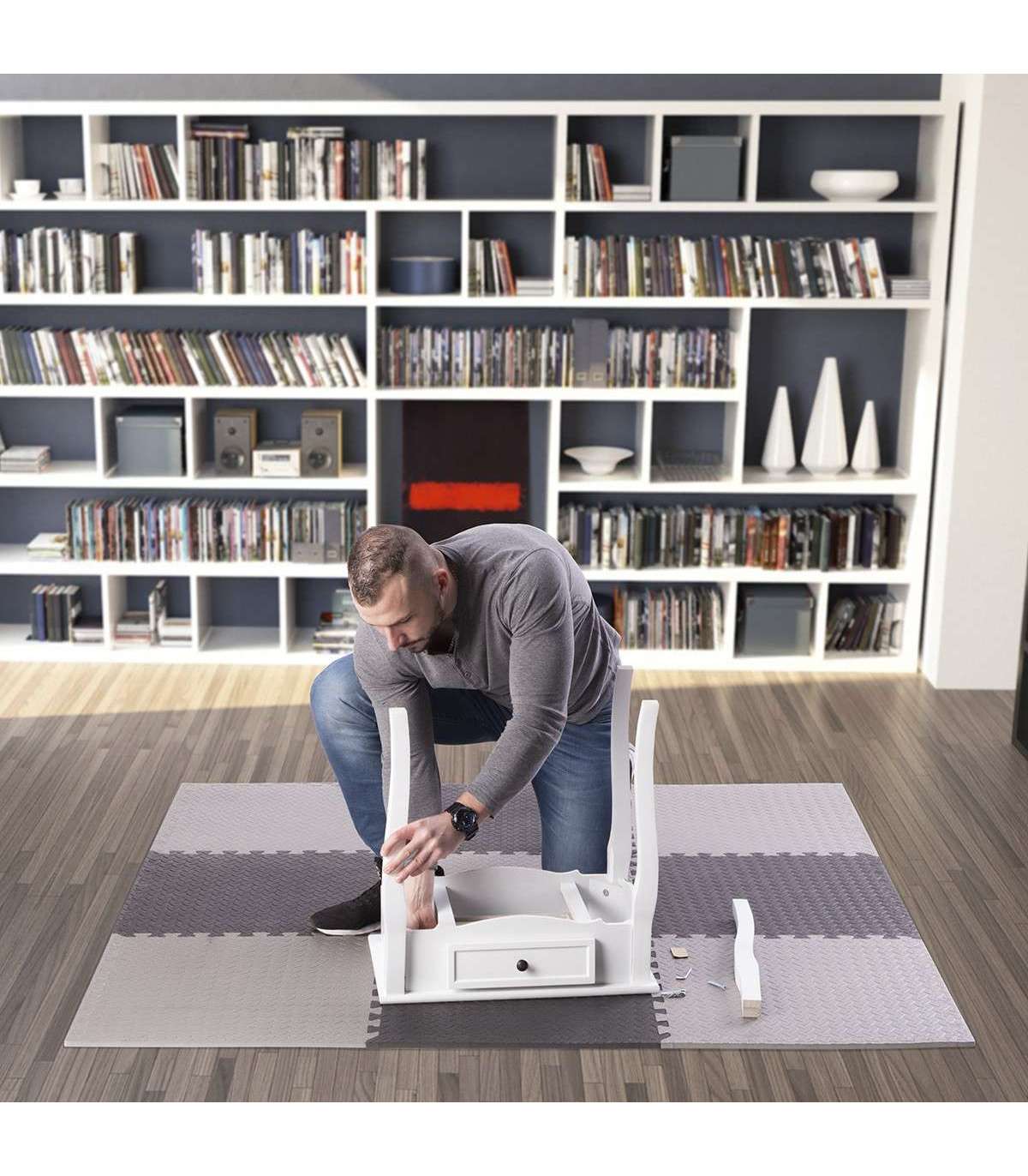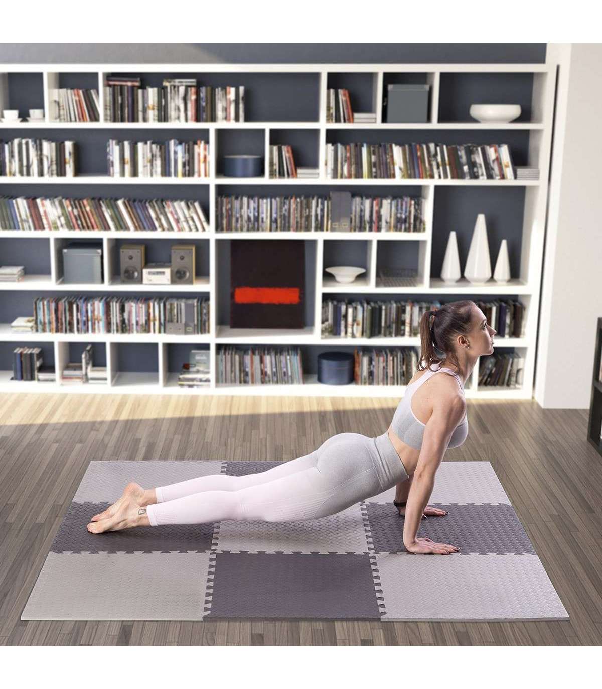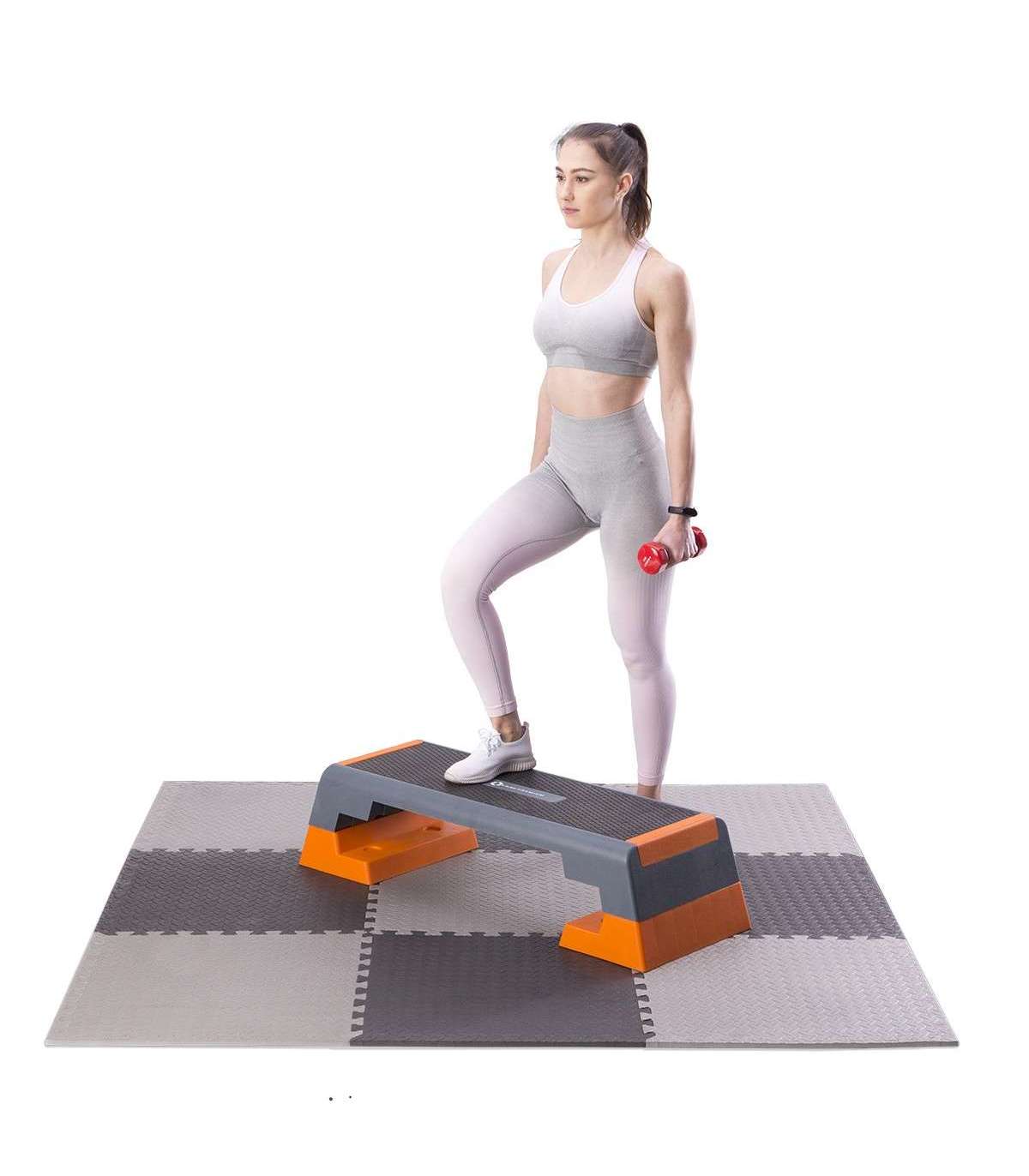 PUZZLE PROTECTIVE MAT effectively protects the floor from damages and additionally it suppresses noises made during training with weights.It also reduces vibration caused during exercising. Puzzle protective mat can be used under many kinds of sports equipment such as for example: exercise bench, exercise bike, elliptical bike, treadmill, rowing machine or even home gym. Thanks to the „puzzle type” assembly system, mat can be configured with any number of sets needed. Deep cuts guarantee stability of the combined elements.Advantages:Protects the floor from damagesReduces noise and vibrationEasy to connect and disconnectEasy to cleanNon-slip, perforated surfaceSpecification:Material: EVAThickness: 12 mmDimensions of a single element:length: 600 mmwidth: 600 mmDimensions of the 9 elements combined:length: 1800 mmwidth: 1800 mmHardness: 30Remarks:2-year warranty for home use1-year warranty for commercial useImporter: Abisal Ltd. | Poland | 41-807 Zabrze | Pyskowicka Street 17 | e-mail: abisal@abisal.plAbisal Ltd.. declares that the products sold by the company are safe and meet the requirements contained in the Act on General Product Safety of December 12, 2003. (Journal of Laws of December 31, 2003)