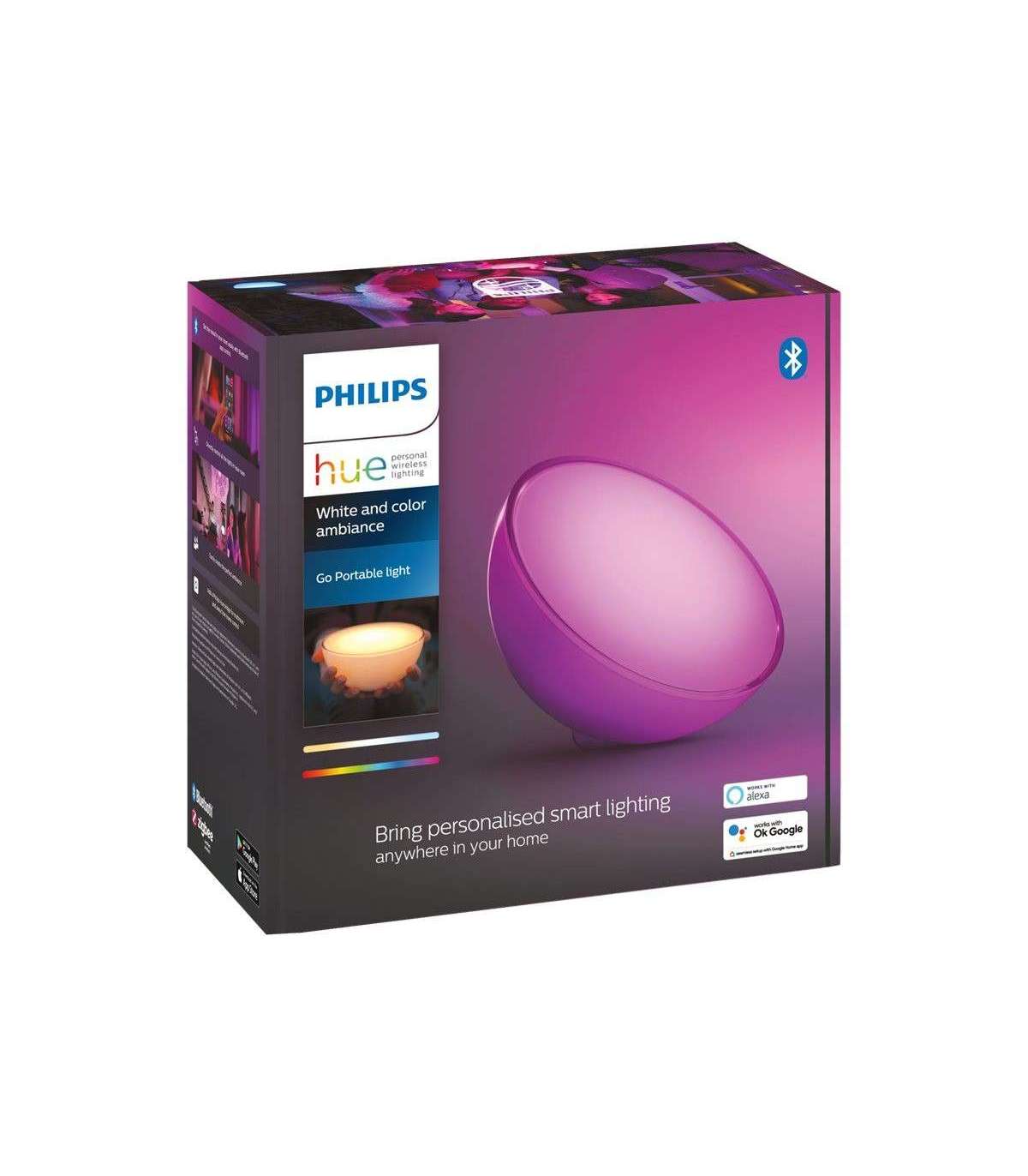 - Take your smart light with you with the portable Hue Go. From a playful splash of color to a mood-setting dinner table centerpiece, the Hue Go makes it fun and easy to set the perfect light. Connect to the Hue Bridge for smart control.