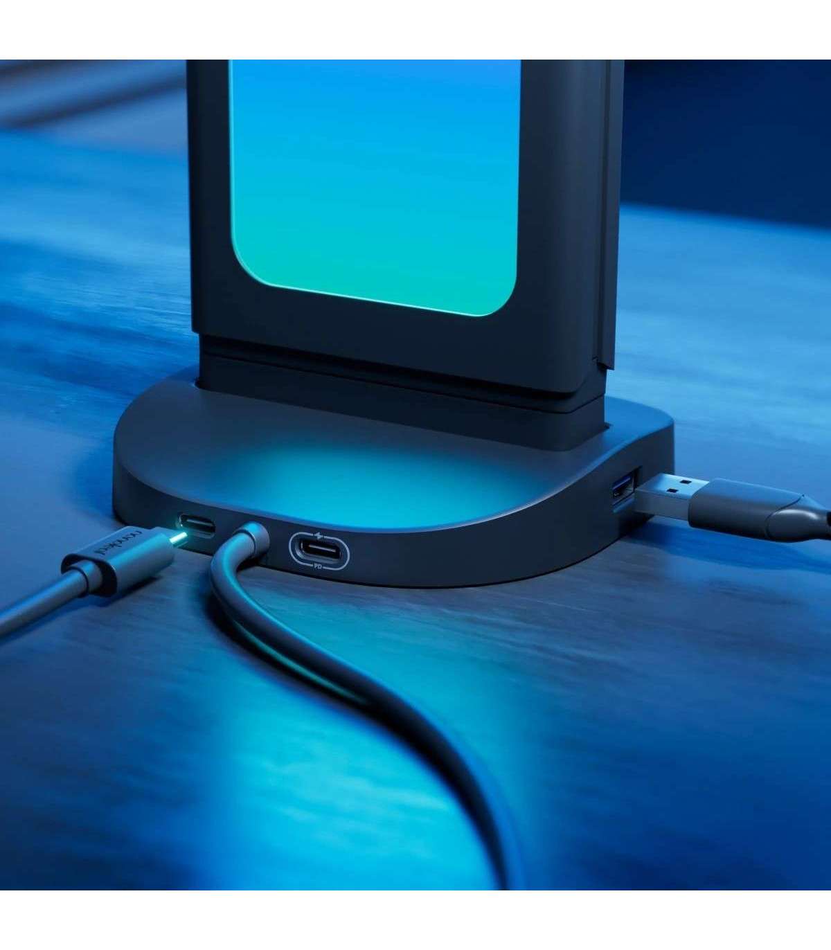 - Connects to your Computer USB-C Port; Outfitted with Extra Ports: 2x USB-C, 1x USB-A, 1x USB-C Power Delivery Input; Includes 4 Pegboard Hooks; Customizable Colours & Motions; Real-time Screen Mirroring.& Music Visualisation