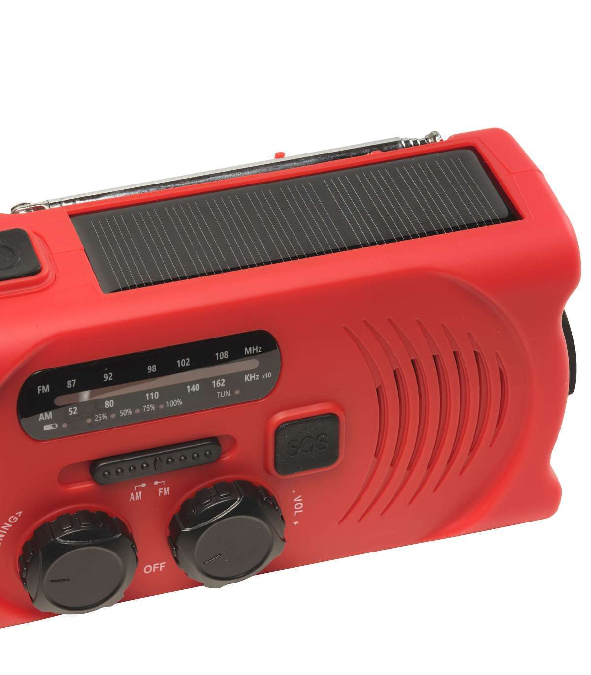 2000 mAh sisseehitatud aku (40-50 tundi päikest, 2,5 tundi väntamist või 4-5 tundi USB-laadimise kaudu täielikuks laadimiseks)