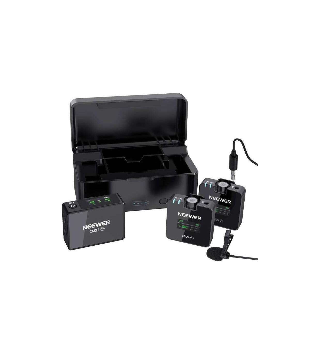 The Neewer Wireless Lavalier Microphone kit includes a stylish portable charging case that allows the two transmitters and the receiver to be fully charged in just 2 hours. The case offers enough capacity to charge the entire set twice, providing a total of up to 20 hours of operation on a single charge - ideal for long recording sessions.