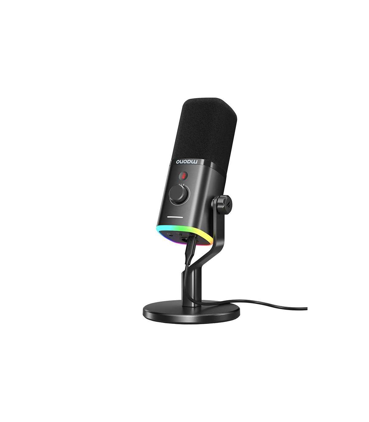The microphone features a single knob for microphone and headphone volume control, as well as a touch-sensitive mute button and RGB lighting control. You can also turn off the backlighting completely.