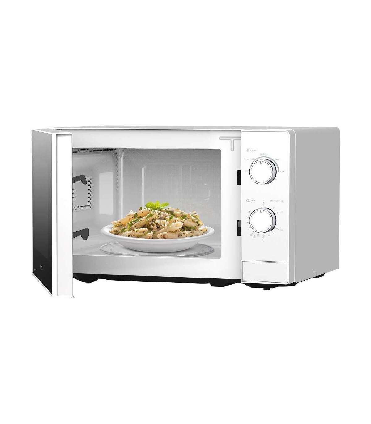 Mikrolaineahjul on 5 erinevat võimsusastet, sulatusfunktsioon ja 35-minutiline taimer.