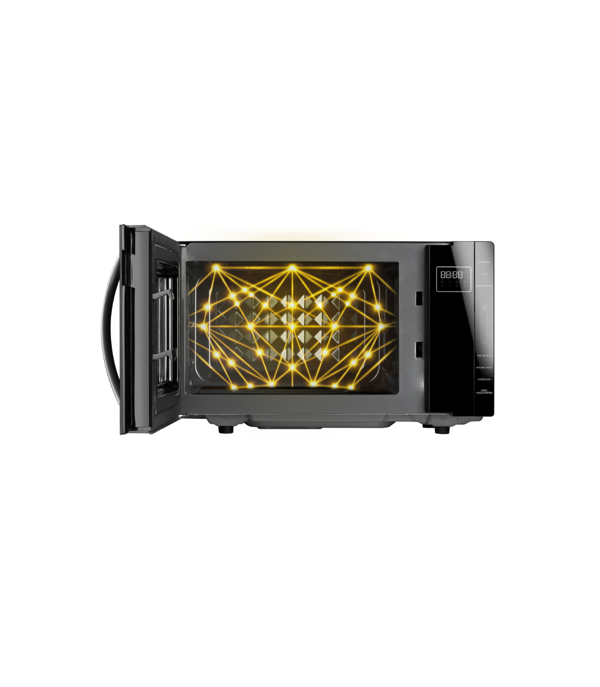 Teemantmustriline sisemine disain tagab mikrolainete efektiivsema jaotuse. Teemantreflektorilt eri suundades peegelduvad mikrolained jaotuvad ahju siseruumis ühtlaselt ja puudub vajadus pöörleva aluse järele.