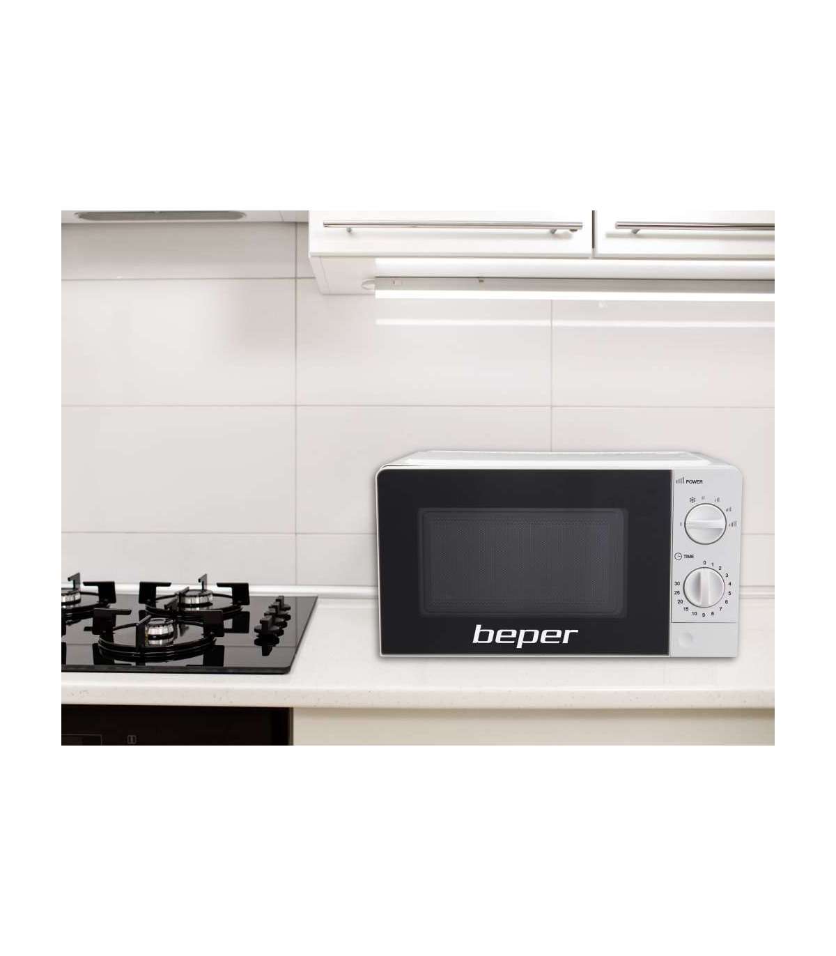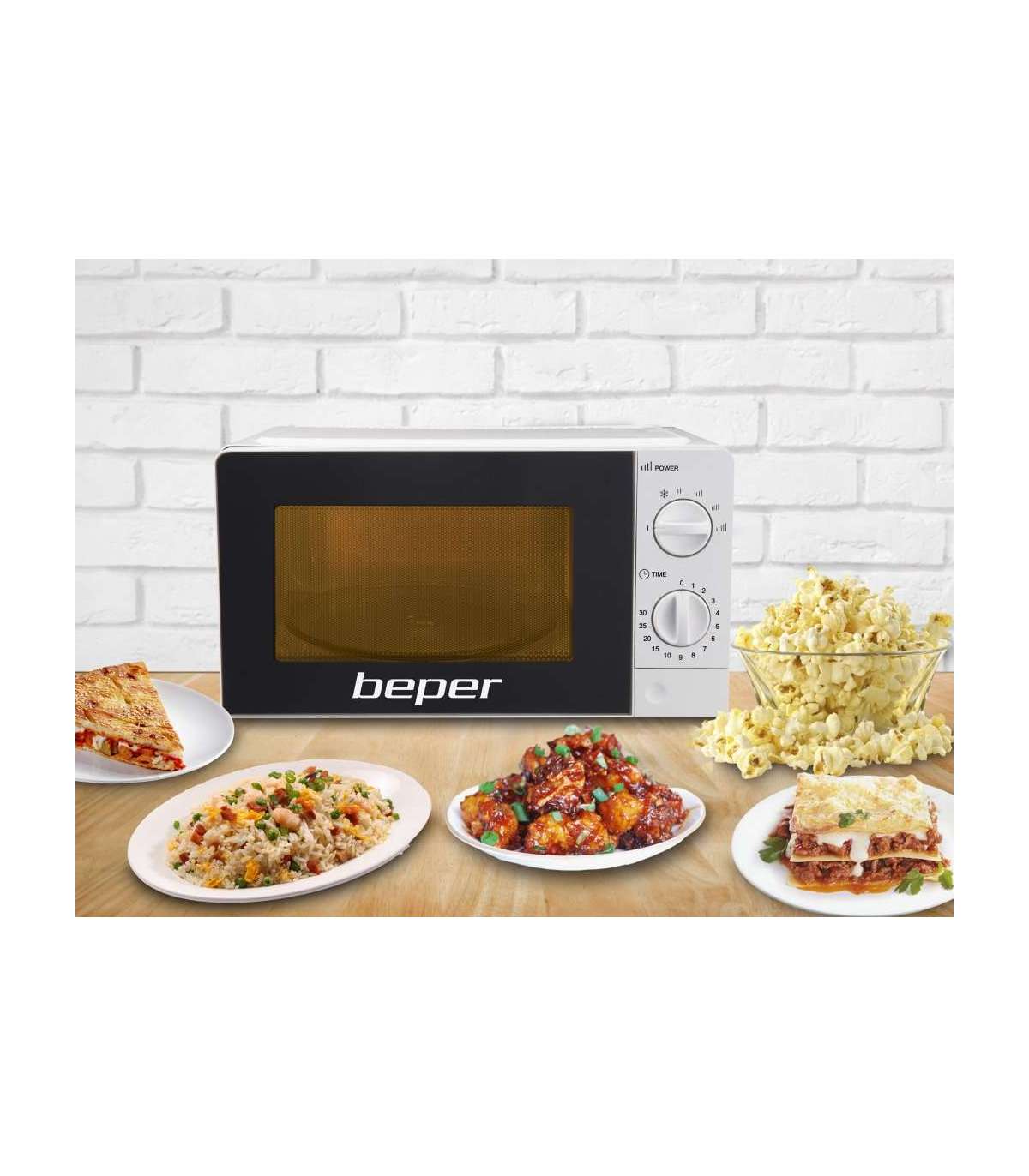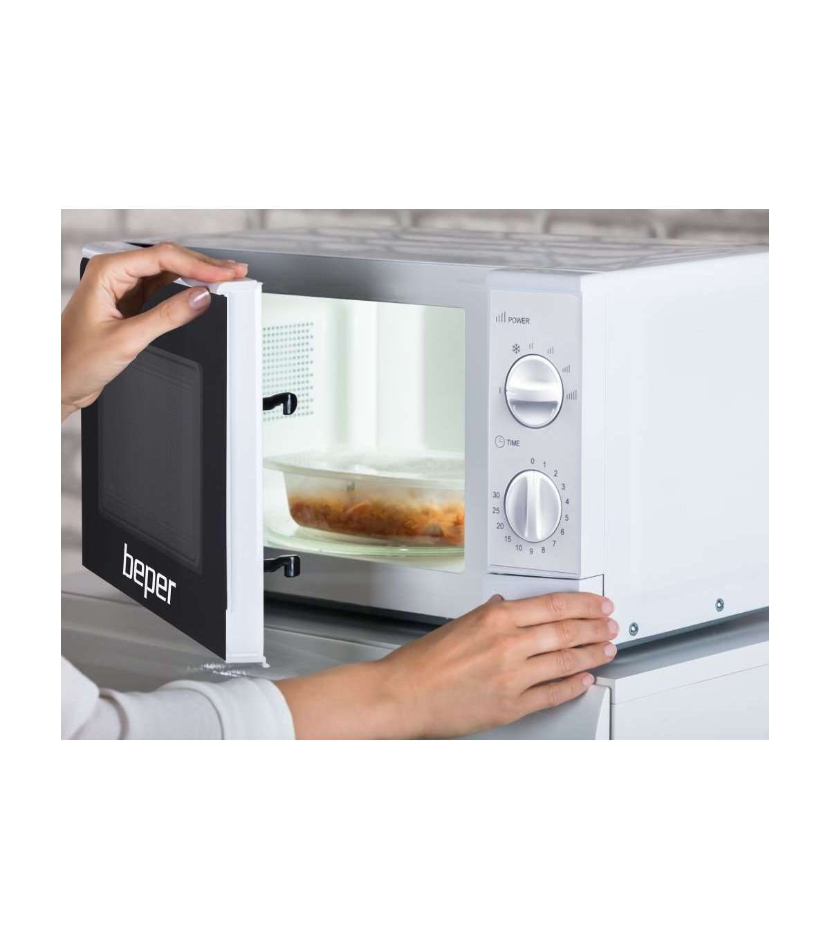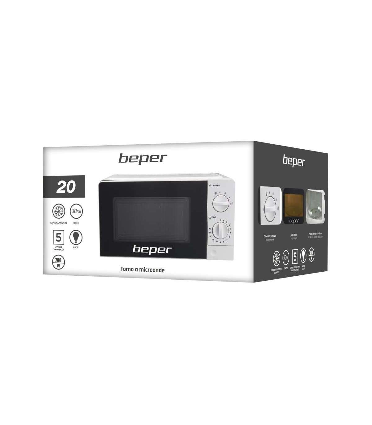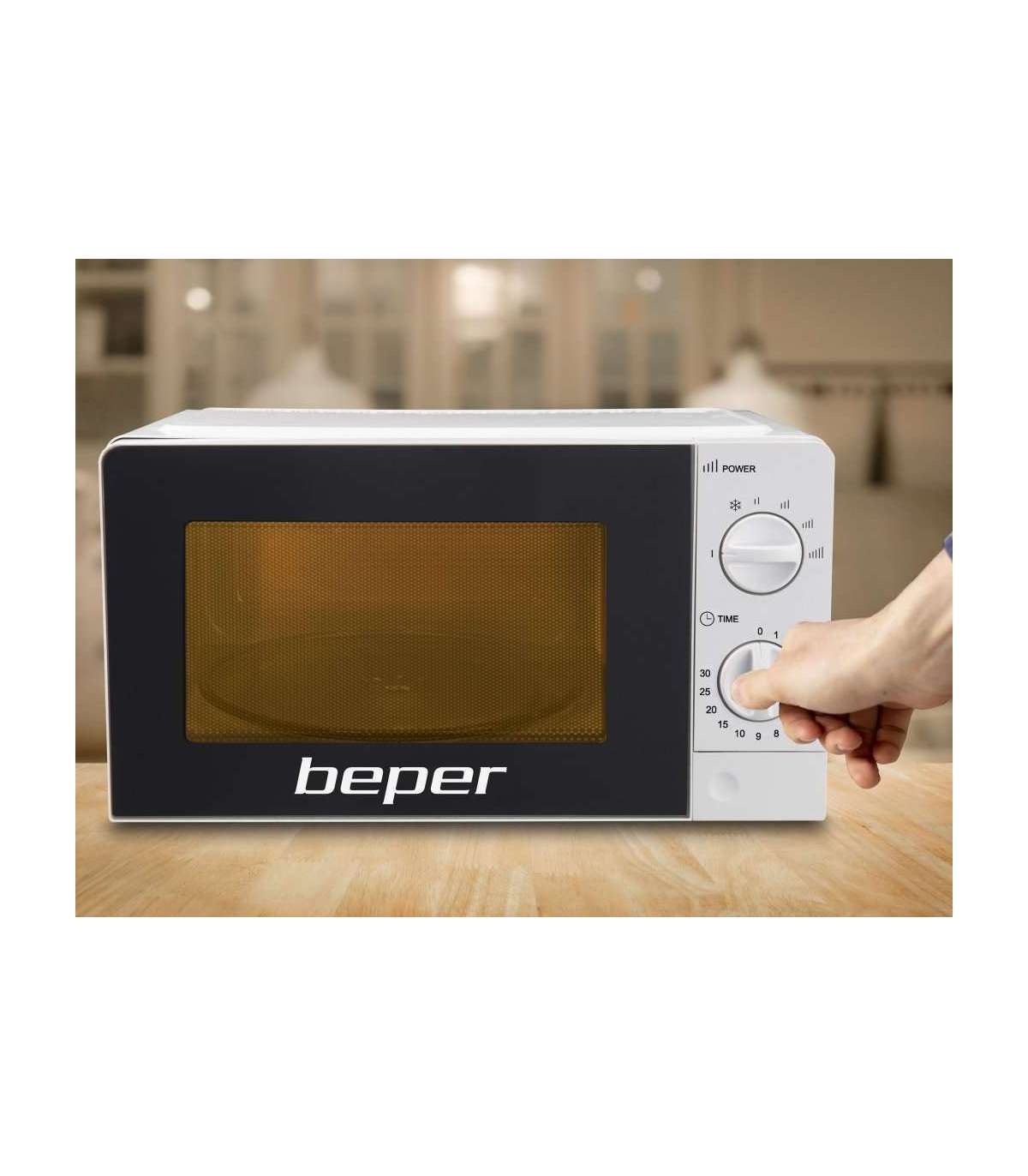 Selle uue Beper mikrolaineahju mahutavus on 20 liitrit. 5 valikulist võimsustaset + sulatusfunktsioon. See on varustatud 0-30-minutilise taimeriga, töövalgusti ja klaasiga pöörleva plaadiga, mille läbimõõt on 24,5.
