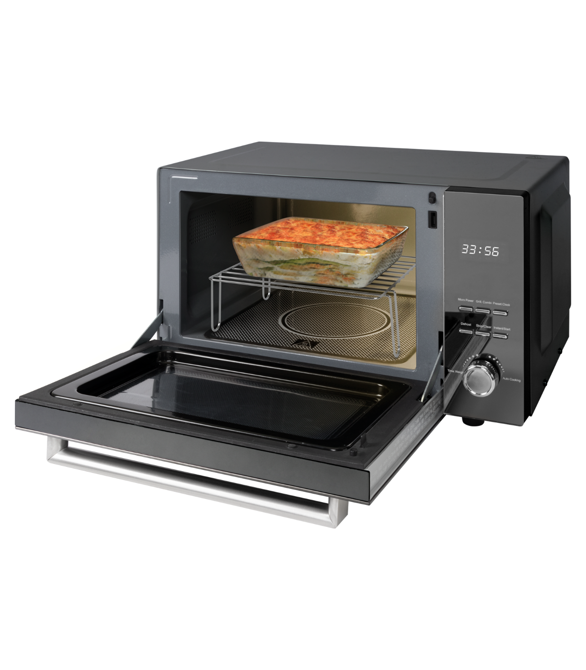 Klaaskeraamiline lame küpsetuskambri põhi tagab suurema kasutatava pinna sobides ideaalselt ka kandiliste ahjuvormide jaoks.