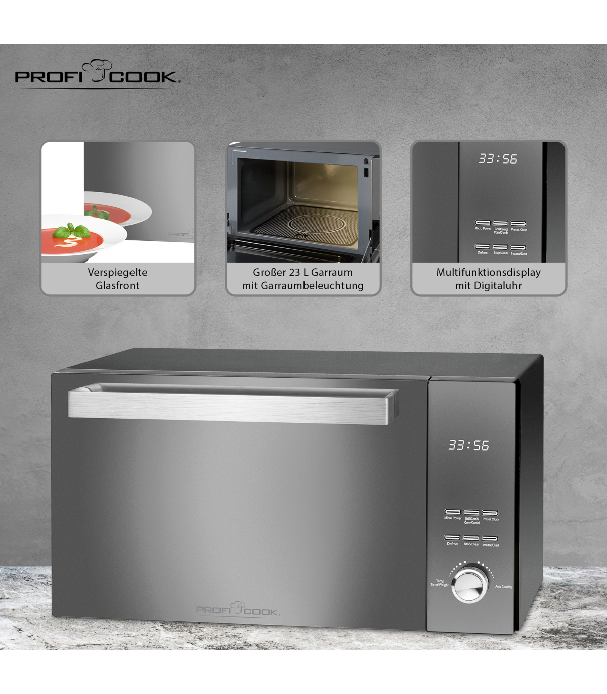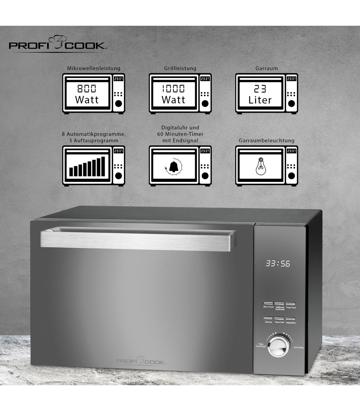 Mikrolaineahi vertikaalselt avaneva uksega Proficook MWG1204