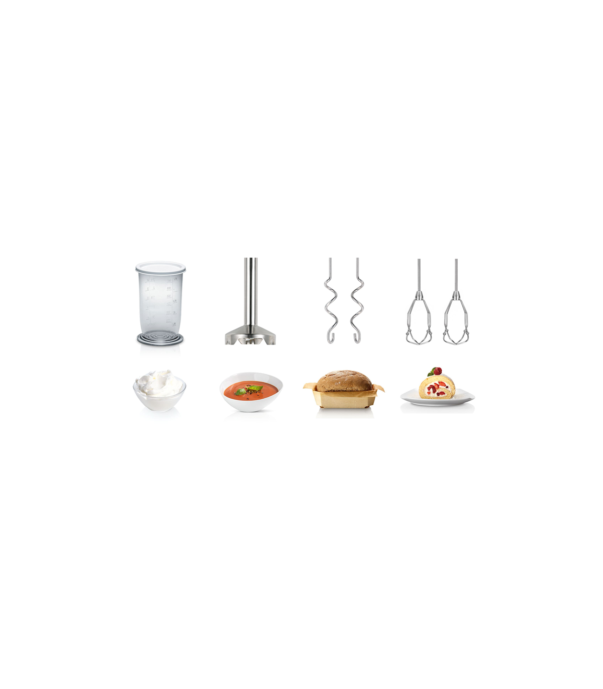 Käsimikser ja kõik tarvikud on hõlpsalt puhastatavad. Kõiki tarvikuid - vispleid, tainakonkse, segamisvart, segamisnõu ja hakkimisanumat - tohib pesta nõudepesumasinas.