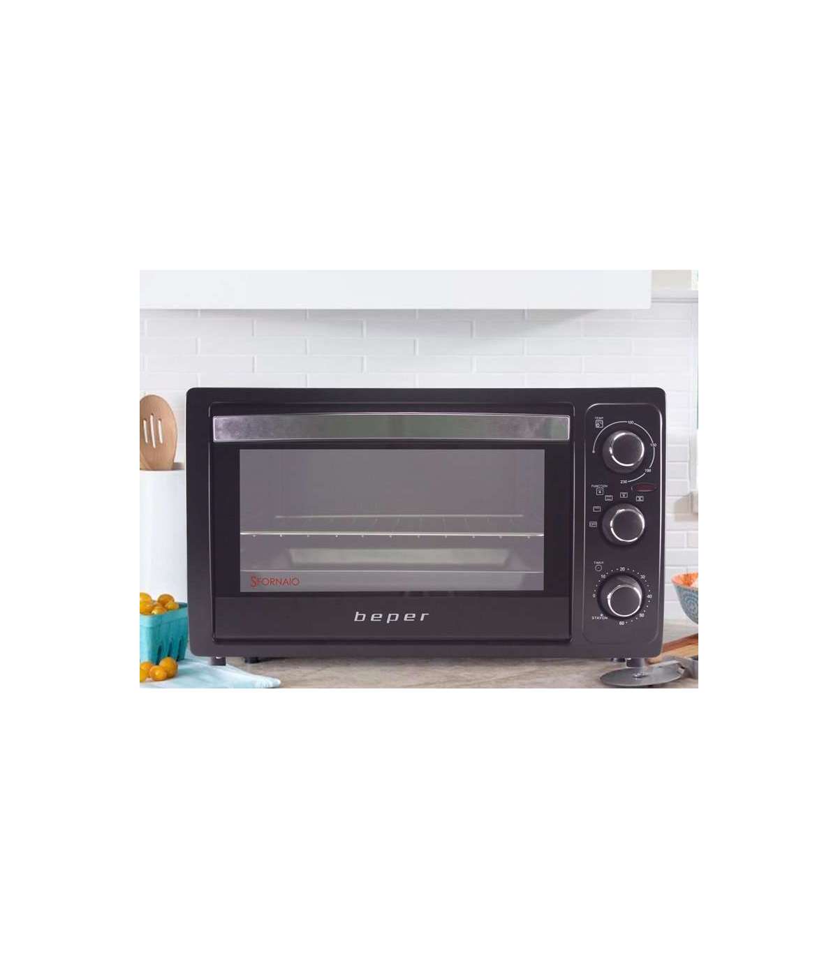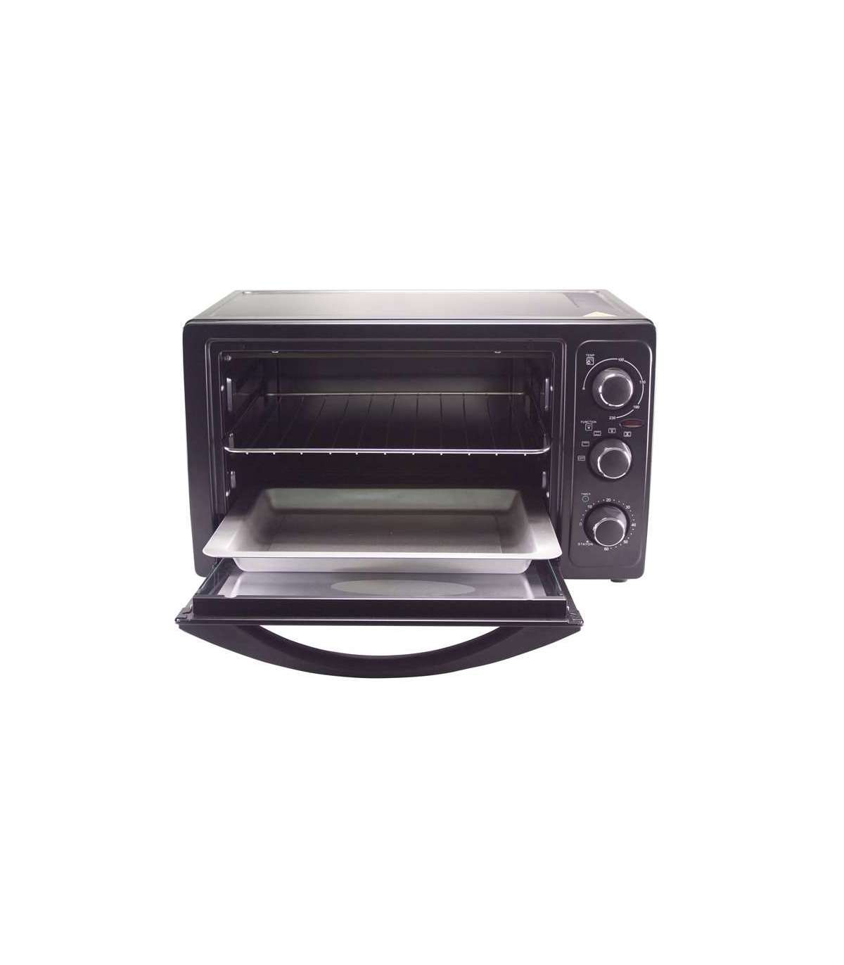 Terasest kütteelementidega elektriahi. Kahekordse klaasiga uks soojusisolatsiooniga käepidemega. Varustatud sisevalgustuse ja ventilatsioonifunktsiooniga. 3 nuppu võimaldavad seada taimeri kuni 60 minutini koos kella ja automaatse väljalülitusega, reguleerida temperatuuri kuni 200°C ja valida soovitud küpsetusviisi. Kaasas on alumiiniumist alus, terasrest ja käepide resti eemaldamiseks.
