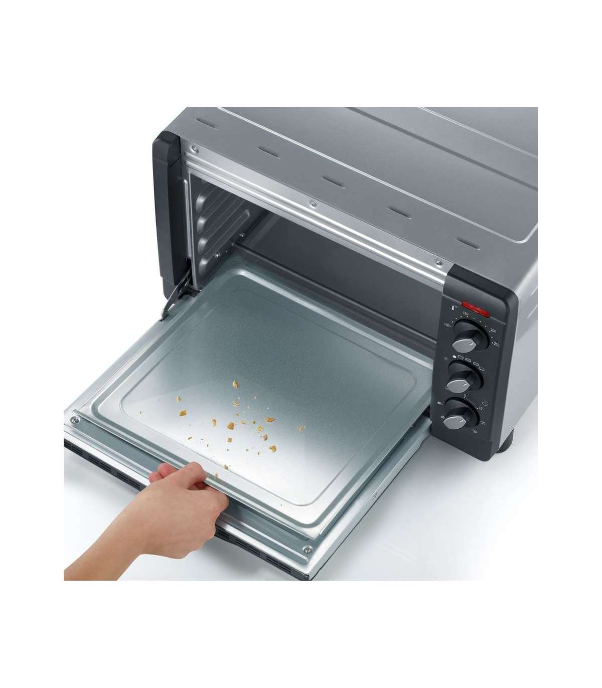 - Removable crumb tray