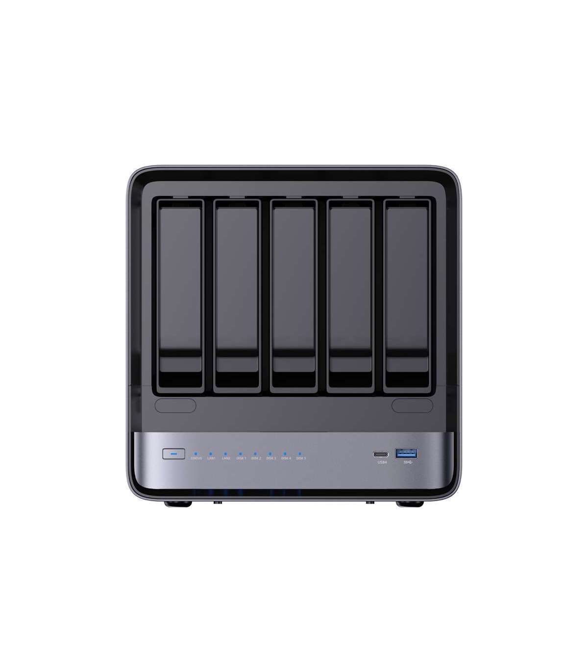 The NAS N5 Pro computer is designed to provide maximum functionality while maintaining compact dimensions (199 × 202 × 252 mm). The innovative 5-bay chassis accommodates as many as five drives in a space typically used for four, offering 25% more capacity without increasing the size of the unit. A slide-out motherboard allows quick access to components and seamless expansion of RAM or replacement of SSDs, while the modular design supports standard components, eliminating the limitations typical of integrated solutions. Efficient cooling is taken care of by the 9225 dual fan system, which actively dissipates heat from the HDD bays, ensuring stable and quiet operation even under heavy load. An additional USB-A port allows you to connect a system drive or backup media, maintaining the aesthetic, minimalist look of the case.