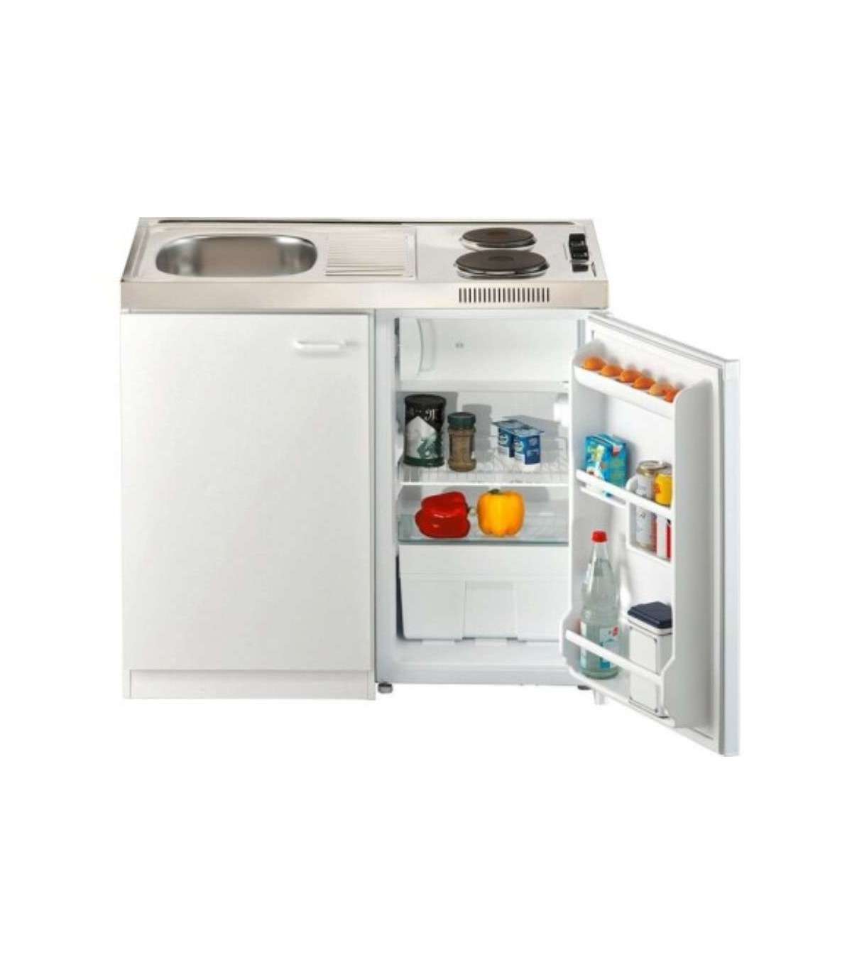 Miniköök külmiku, valamu ja 2 malmplaadiga