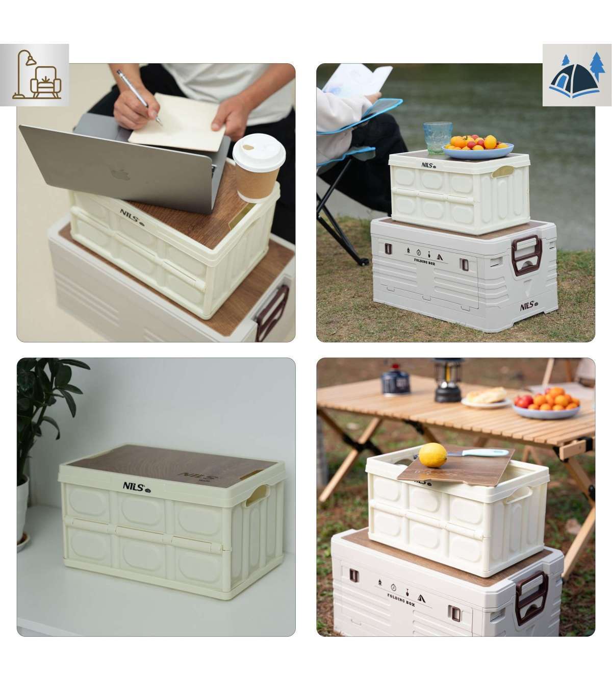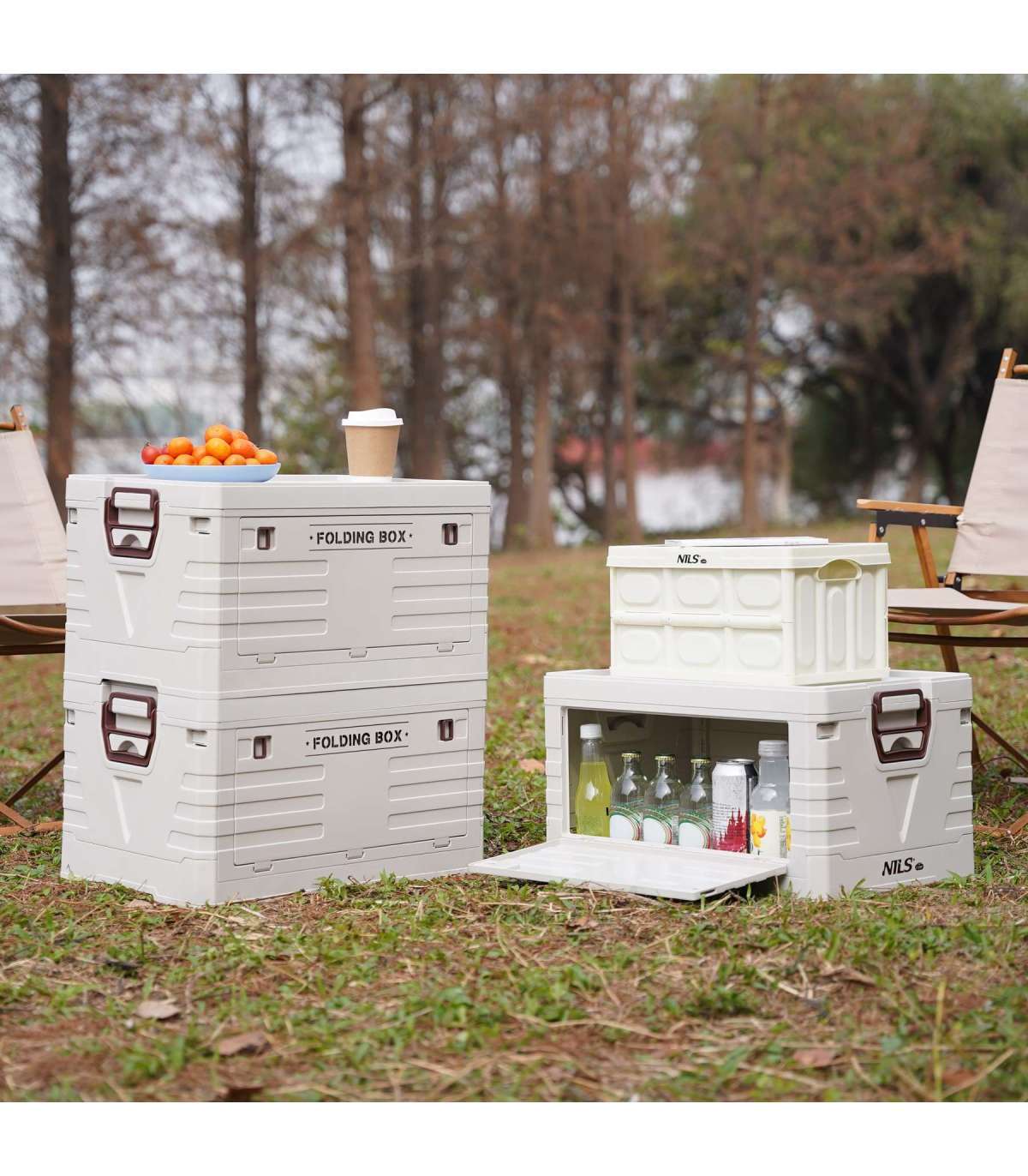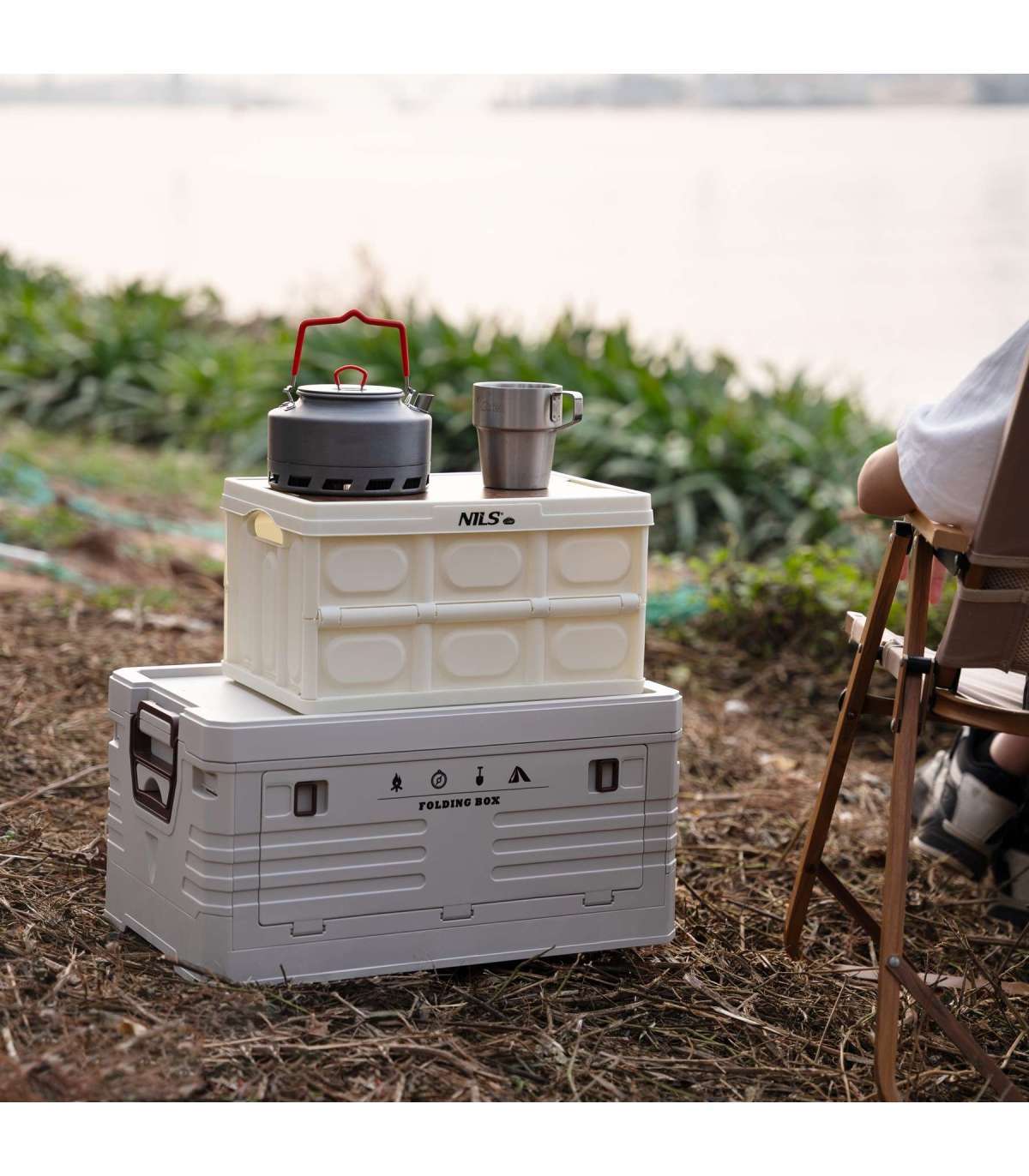 NCB4007 FOLDING CAMPING BOX WHITE WITH LID 2IN1 NILS CAMP