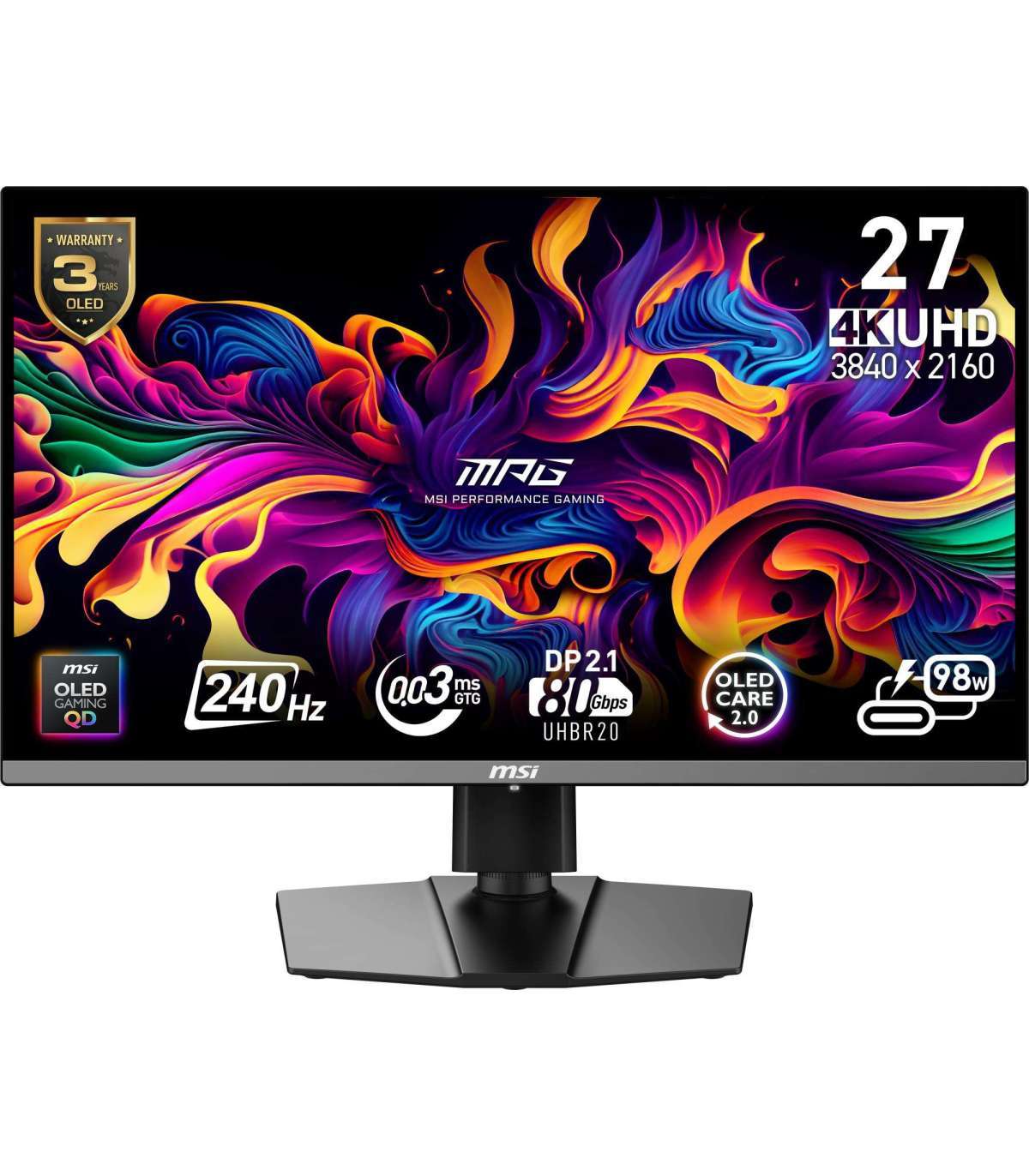 Monitor|MSI|MPG 272URX QD-OLED|27"|Gaming/4K|Matte|Panel QD-OLED|3840x2160|16:9|240 ??|0.03 ms|Swivel|Pivot|Height adjustable