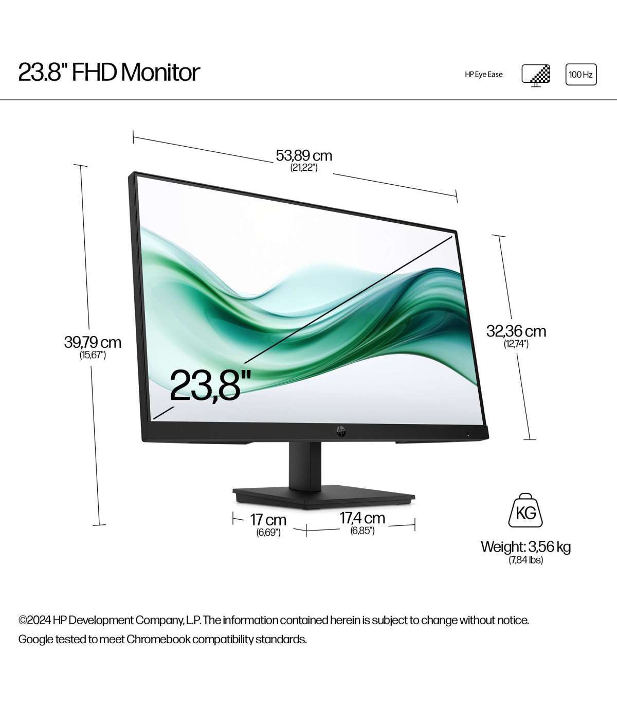HP 324pv Series 3 Pro FHD Monitor - 24" 1920x1080 FHD 250-nit 100Hz AG, VA, HDMI/VGA, tilt, 3 years (replaces P24v)