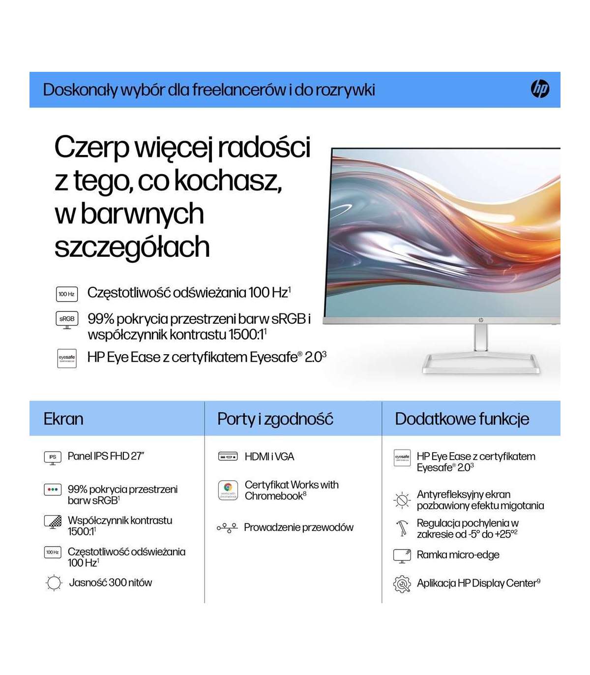 HP 27-inch Series 5 FHD monitor in white - 527sw