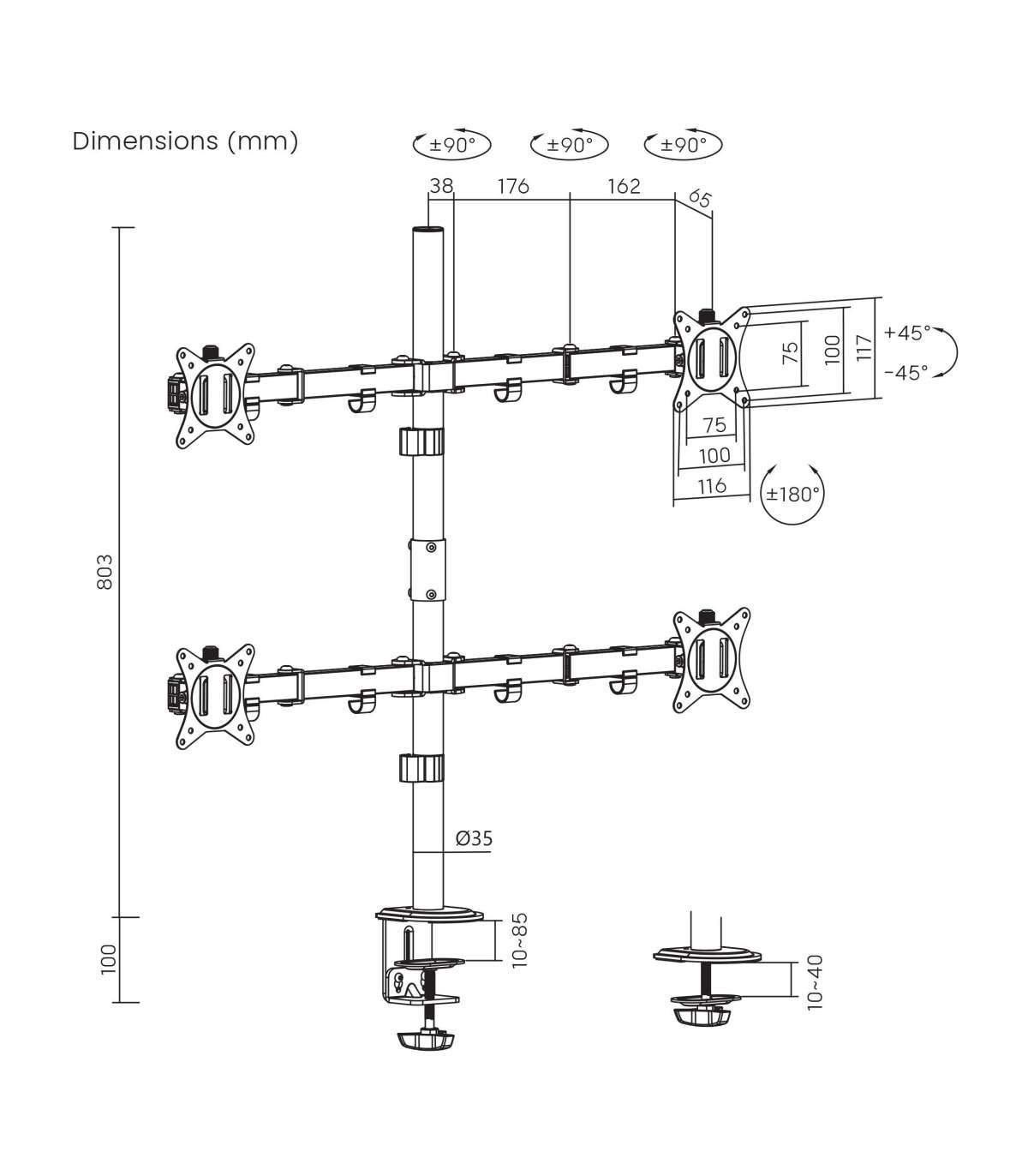 Maksimaalne VESA: 100 x 100