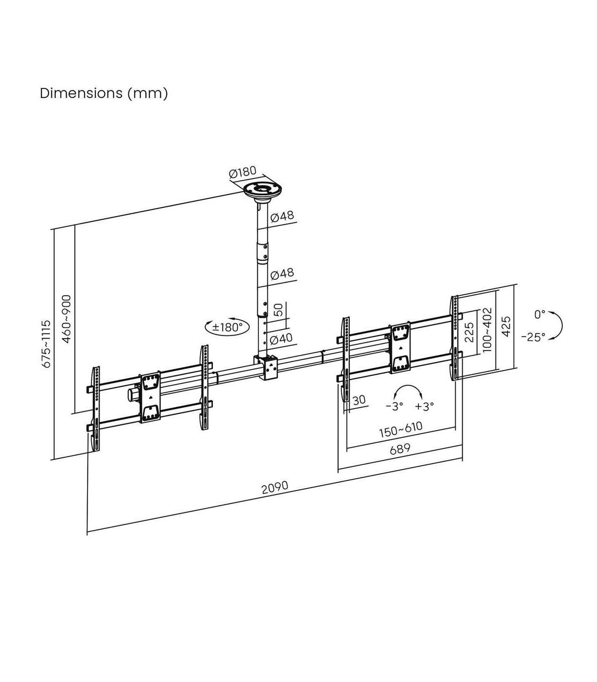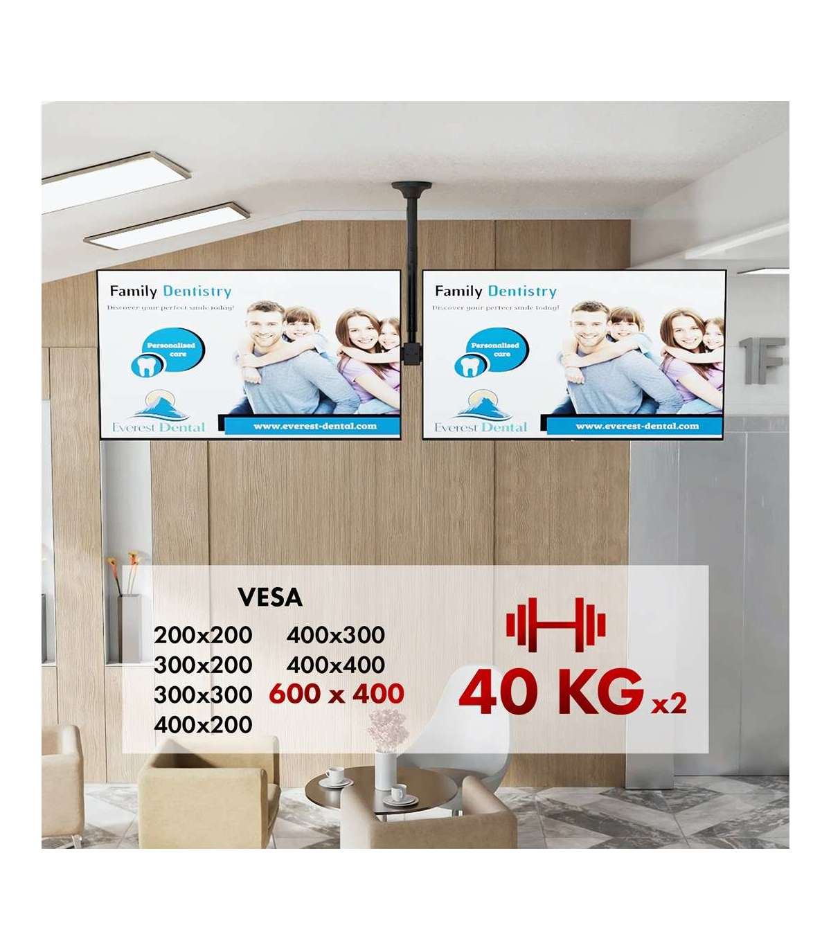 Maclean ceiling mount for two TVs, max load 2x40kg, 34-60", max VESA 600x400, MC-111 B