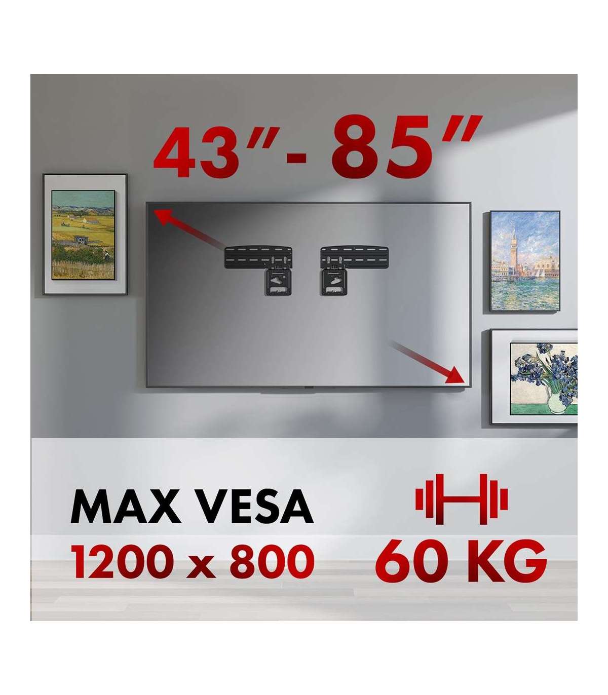 Maclean TV bracket, compatible with Samsung QLED TVs, 43"-85", max. 60kg, MC-806 N