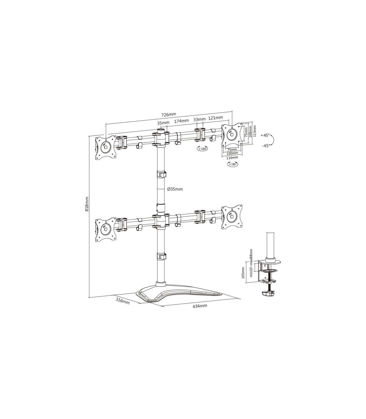 Digitus | Desk Mount | DA-90364 | Tilt, swivel, rotate | Black