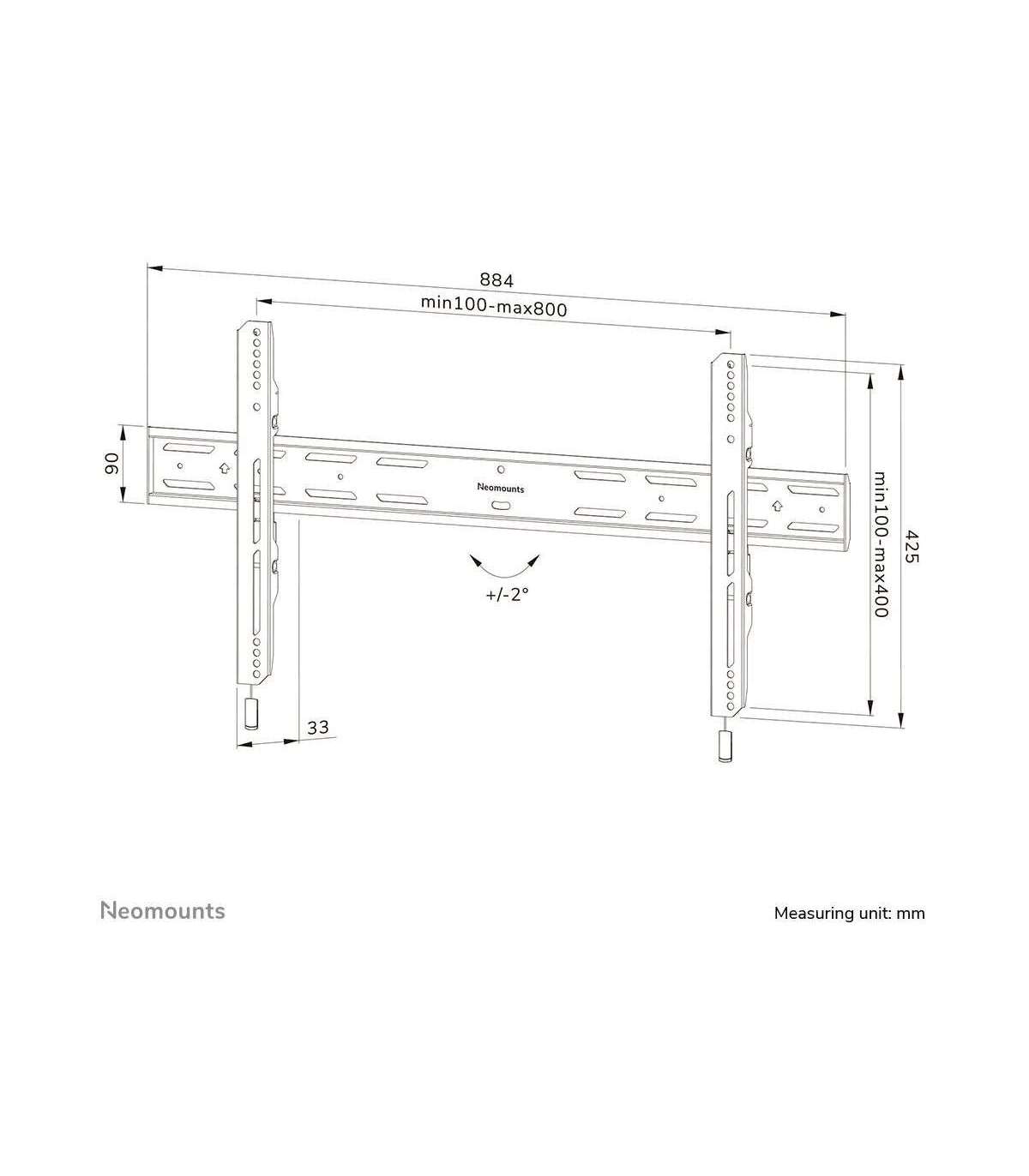 Neomounts Wall mount | WL30S-850BL18 TV mount wall | Adjustable Height | 43-86 " | Maximum weight (capacity) 60 kg | Black