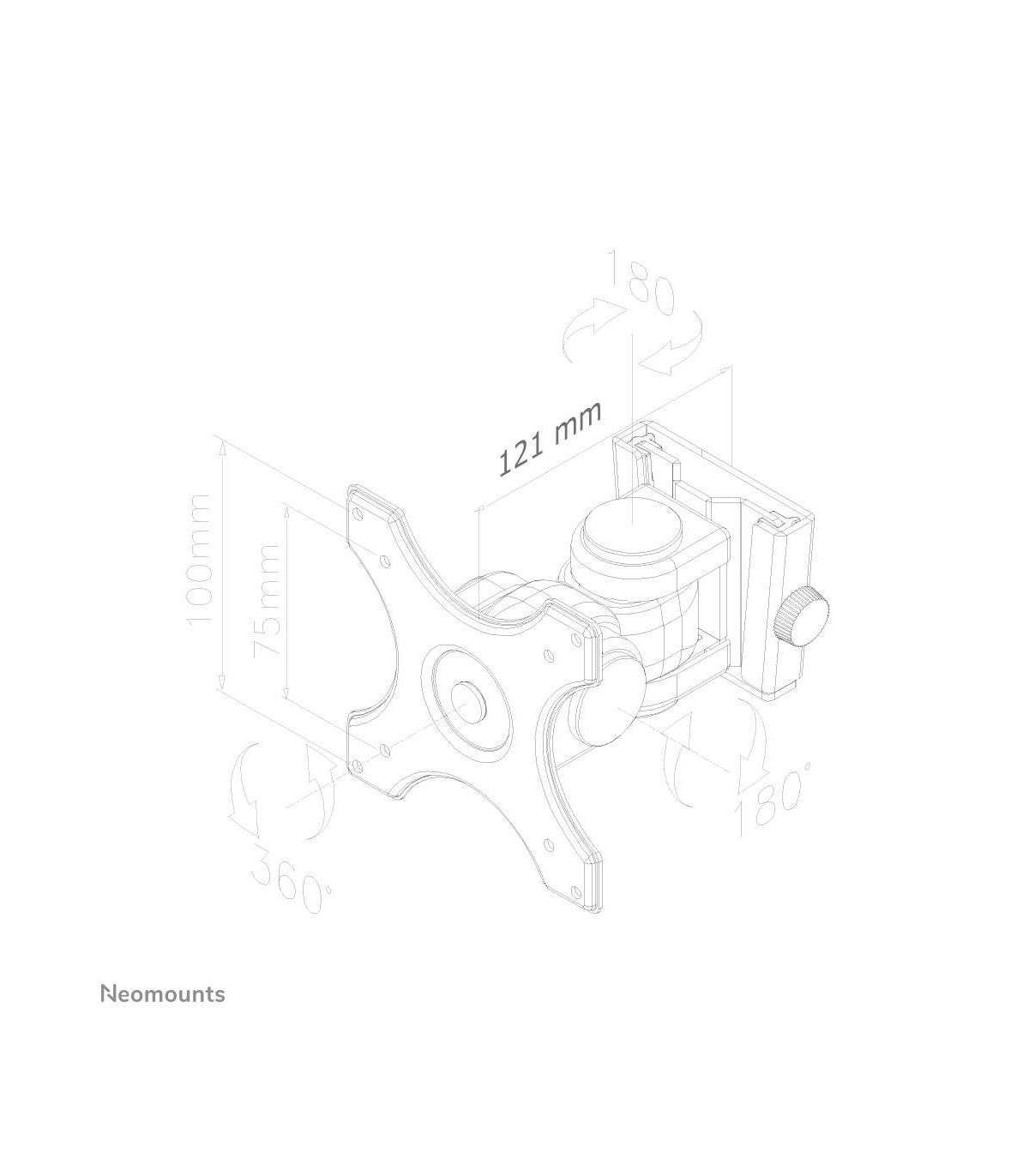 NewStars’ tilt- (180°), rotate (360°) and swivel (180°) technology allows the mount to change to any viewing angle to fully benefit from the capabilities of the flat screen. Depth of this mount is 12 centimetres. Cable management conceals and routes cables from mount to flat screen. Hide your cables to keep living room, bedroom or home cinema installation nice and tidy.