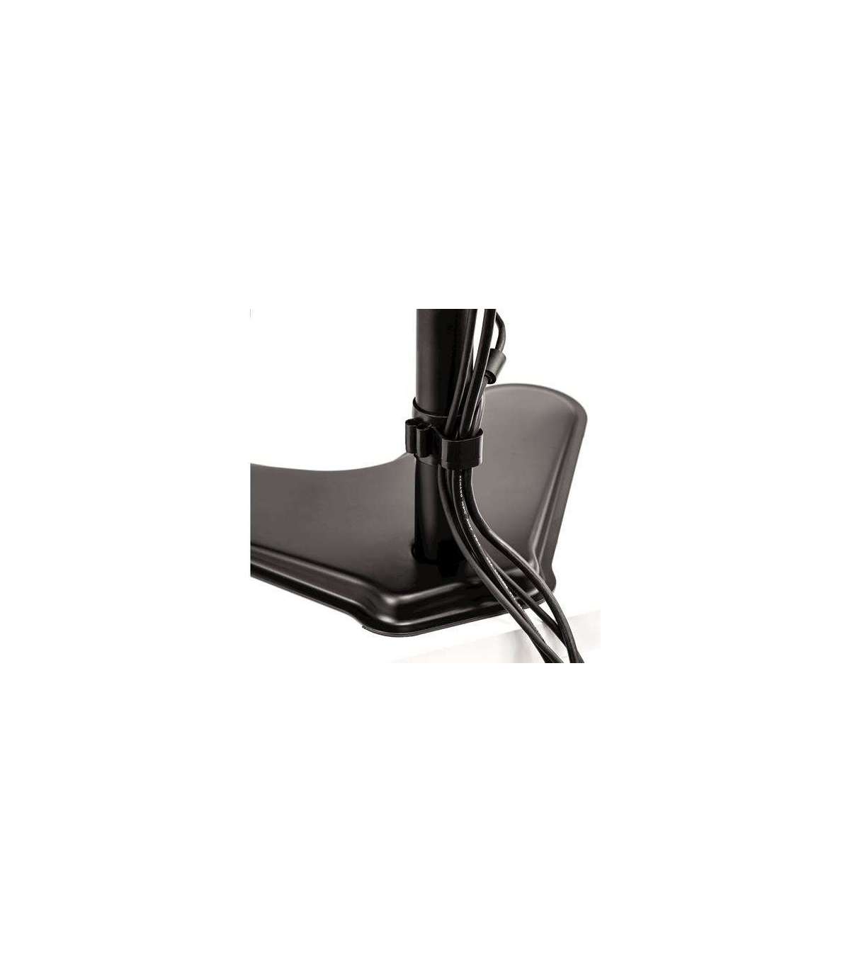 - Free-standing design allows dual monitors to be used in spaces that do not allow a clamp or grommet mount