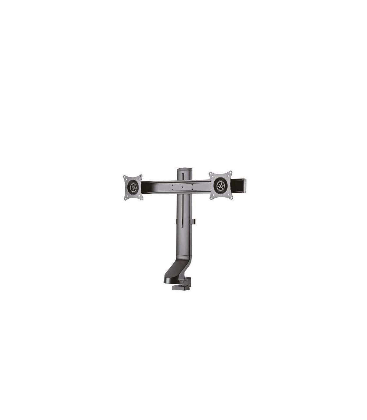 The Neomounts by Newstar desk mount, model FPMA-D860DBLACK is a tilt-, swivel and rotatable desk mount for two flat screens up to 27?. This mount is a great choice for space saving placement on desks. Neomounts by Newstar's versatile tilt (20°), rotate (360°) and swivel (20°) technology allows the mount to change to any viewing angle to fully benefit from the capabilities of the flat screen. The mount is manually height adjustable from 24 to 47 centimetres. Depth 5 centimetres. Neomounts by Newstar FPMA-D860DBLACK has one pivot point and is suitable for screens up to 27" (69 cm). The weight capacity of this product is 7 kg each screen. The desk mount is suitable for screens that meet VESA hole pattern 75x75 or 100x100mm. Different hole patterns can be covered using Neomounts by Newstar VESA adapter plates. By using an ergonomic mount neck- and back complaints can be avoided. Ideal for use in offices and on counters or in a reception area. All installation material is included with the product.