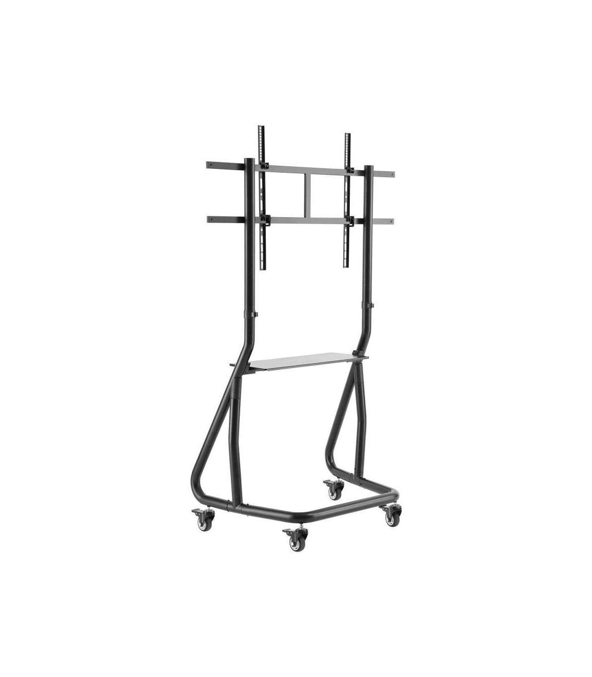 The Neomounts by Newstar floor stand, model NS-M3800BLACK is a mobile floor stand for flat screens up to 100" (254 cm). This mobile stand is a great choice for space saving placement or when wall-, ceiling mounting or desk placement is not an option. This cart stretches your investment by serving a variety of projection needs by sharing a large display over multiple rooms. Get optimal positioning for both standing and seated audiences, in any application, in any part of your location. An innovative cable management conceals and routes cables from mount to flat screen. Hide your cables to keep the stand nice and tidy. Neomounts by Newstars' floor stand, NS-M3800BLACK holds your TV, AV equipment and even hides your cables. The casters allow the stand to move it to where you need it. Easily roll this cart through doorways and over thresholds. The floor stand also comes with four leveling feet. Neomounts by Newstar NS-M3800BLACK is suitable for screens up to 100" (254 cm). The weight capacity of this product is 100 kg. The stand is suitable for screens that meet VESA hole pattern 400x400 to 1000x600mm. All installation material is included with the product.