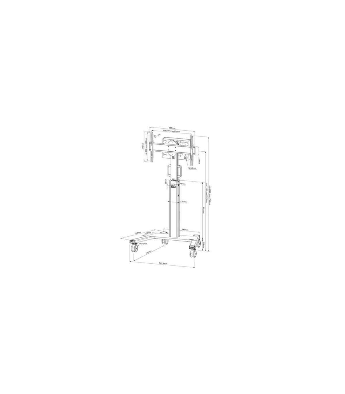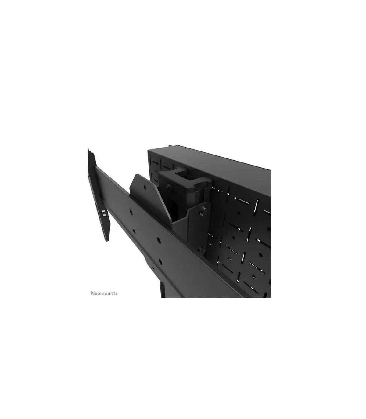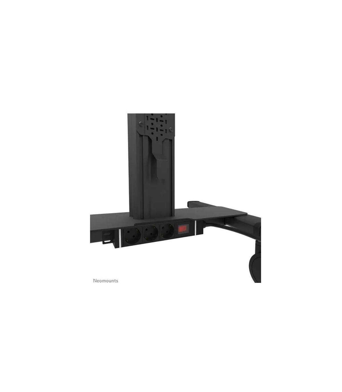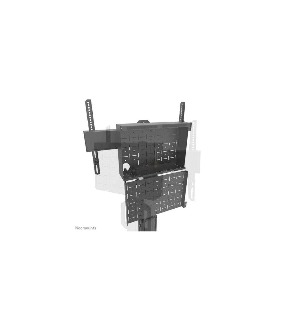 The Neomounts Select FL50S-825BL1 is a mobile floor stand for flat screens up to 75" with a maximum weight capacity of 70 kg. The floor stand is manually adjustable in height (114,5-153,5 cm), as well as the bracket head. A lockable, ventilated hardware compartment with cable opening is included and optional for installation (both portrait and landscape).