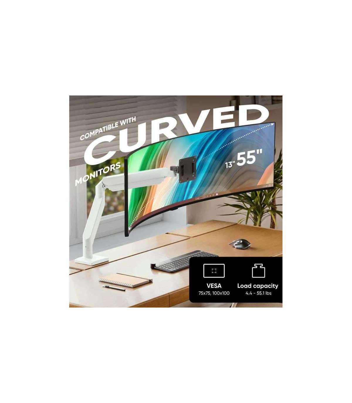 Desk Mount for Monitor 13"-55" max 25 kg, Tilt-Swivel, with Rotation, White-black G110