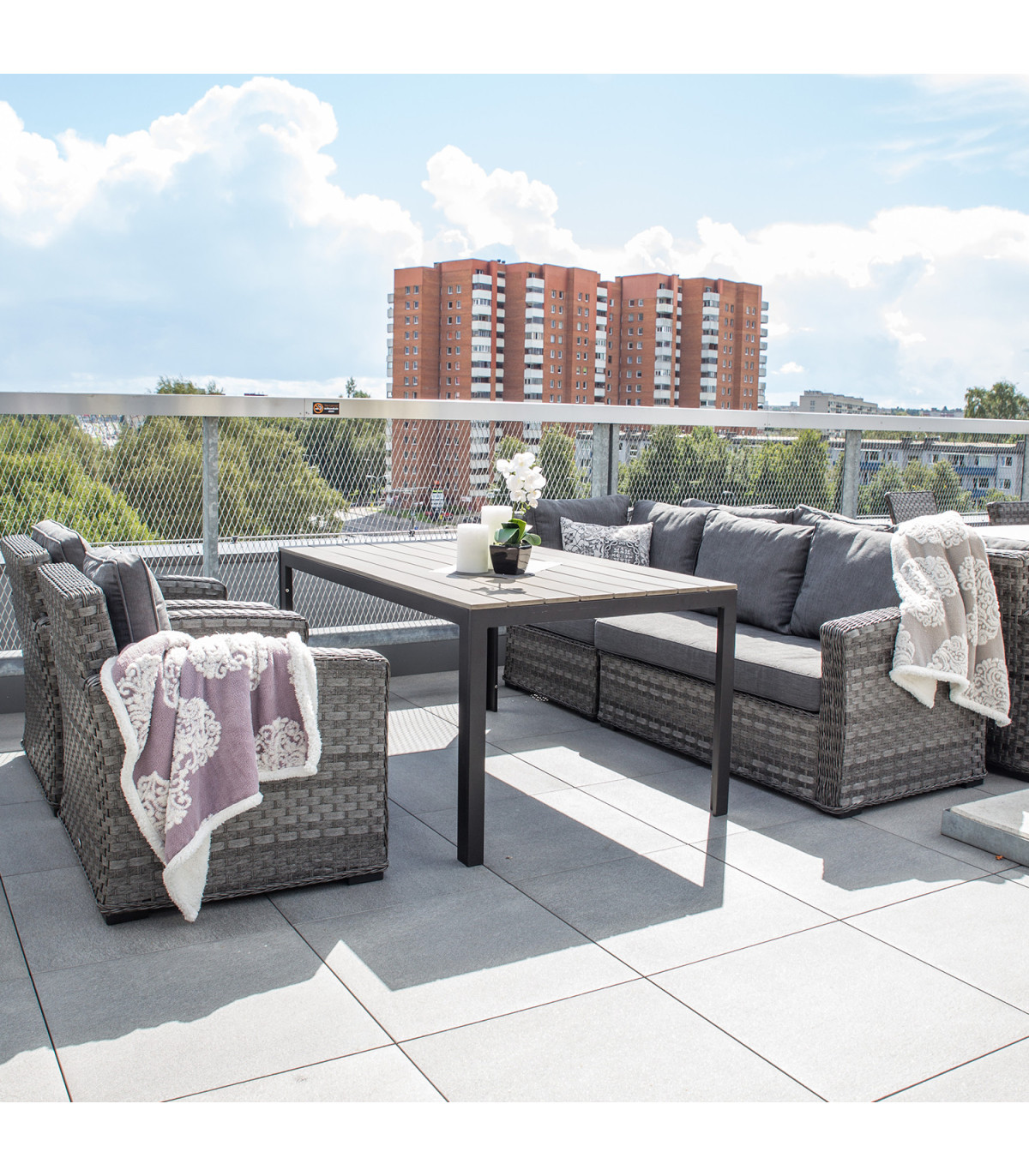 Toode on muutlikes ilmastikutingimustes hästi vastupidav ja lihtsalt hooldatav. Kaitset ilmastikuolude eest vajavad ainult padjad. Välitingimustes kasutatava mööbli eluea pikendamiseks soovitame kasutada välimööbli katteid.