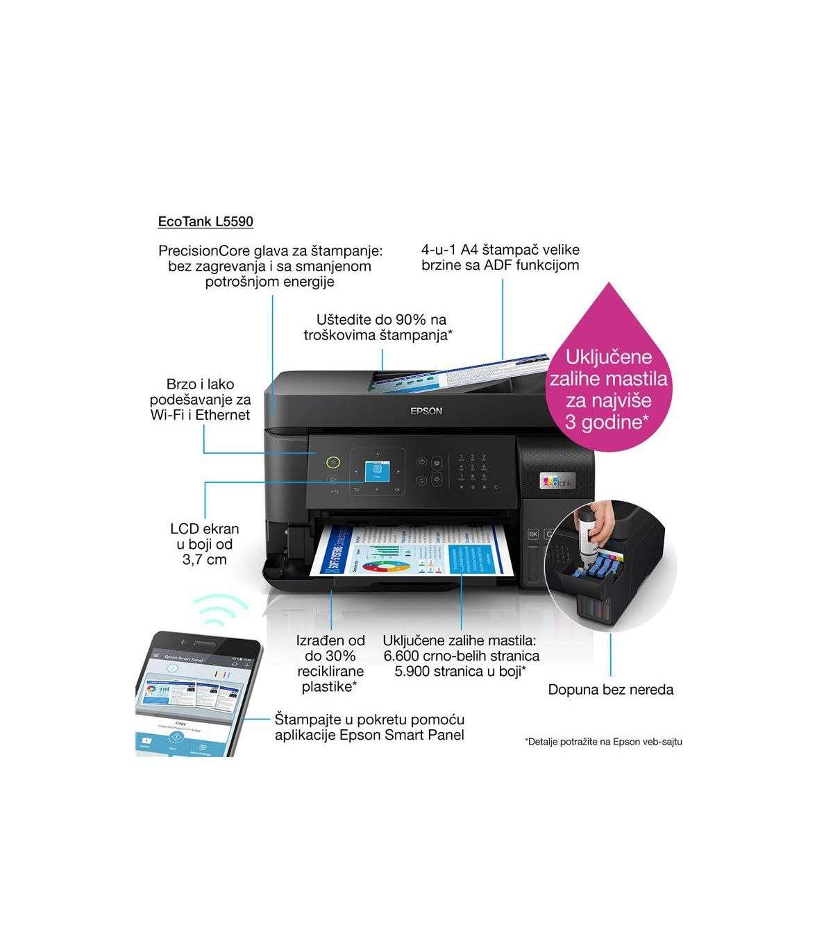 Epson Multifunctional printer | EcoTank L5590 | Inkjet | Colour | Inkjet Multifunctional Printer | A4 | Wi-Fi | Black