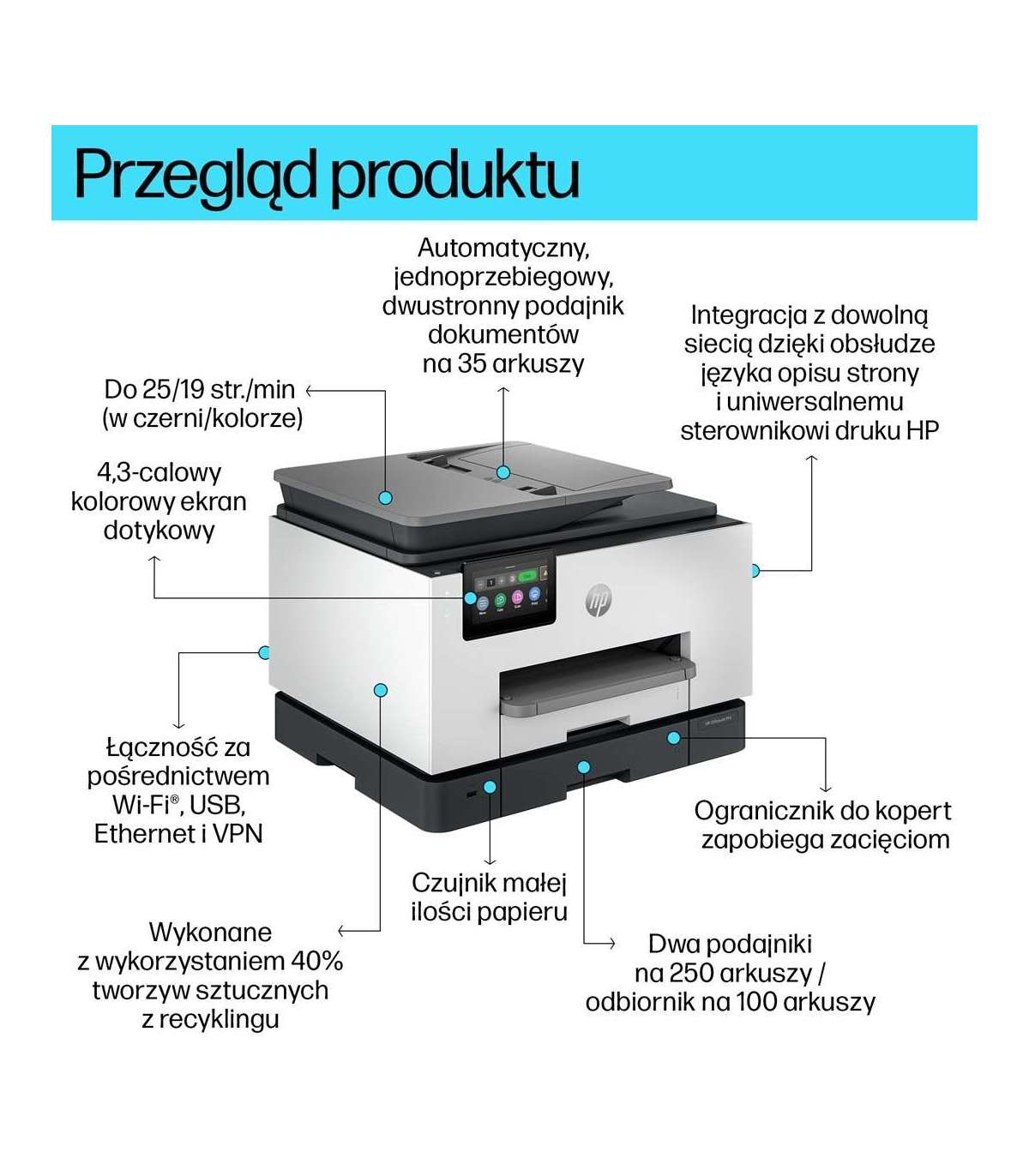 HP OfficeJet Pro 9130b Wireless All-in-One Color Printer, Two-sided printing Copier, Scanner