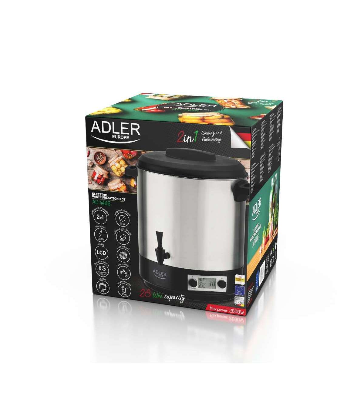 Adler Electric pot/Cooker AD 4496 2600 W 28 L Stainless steel/Black