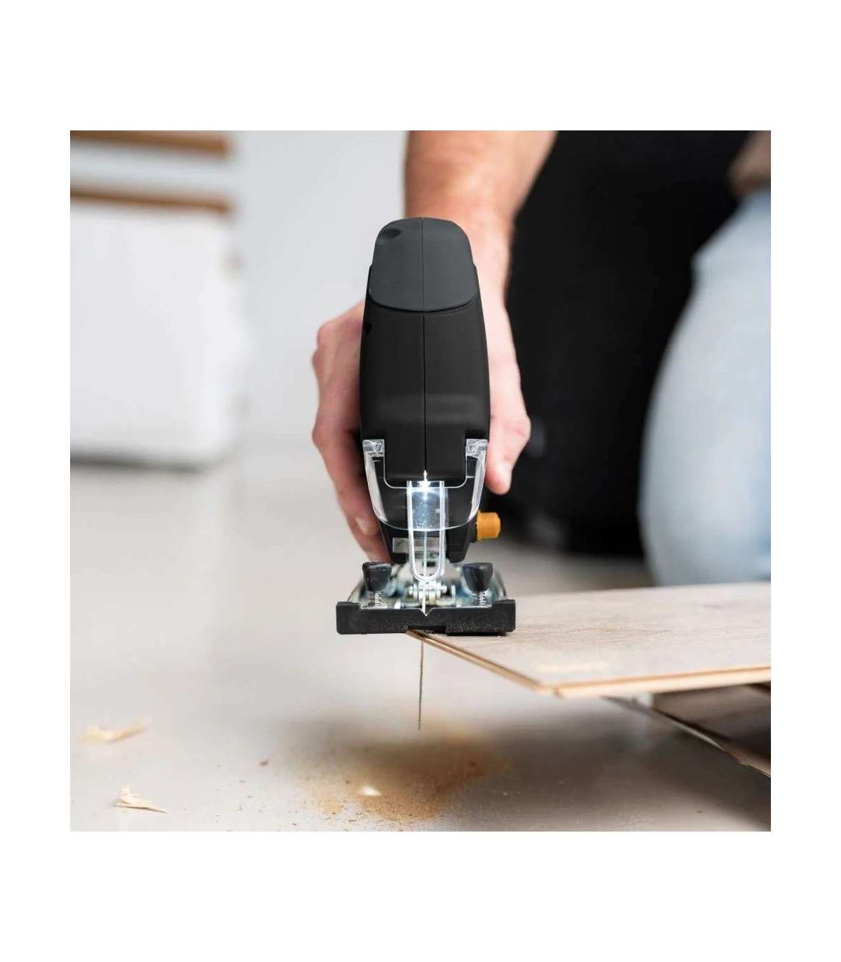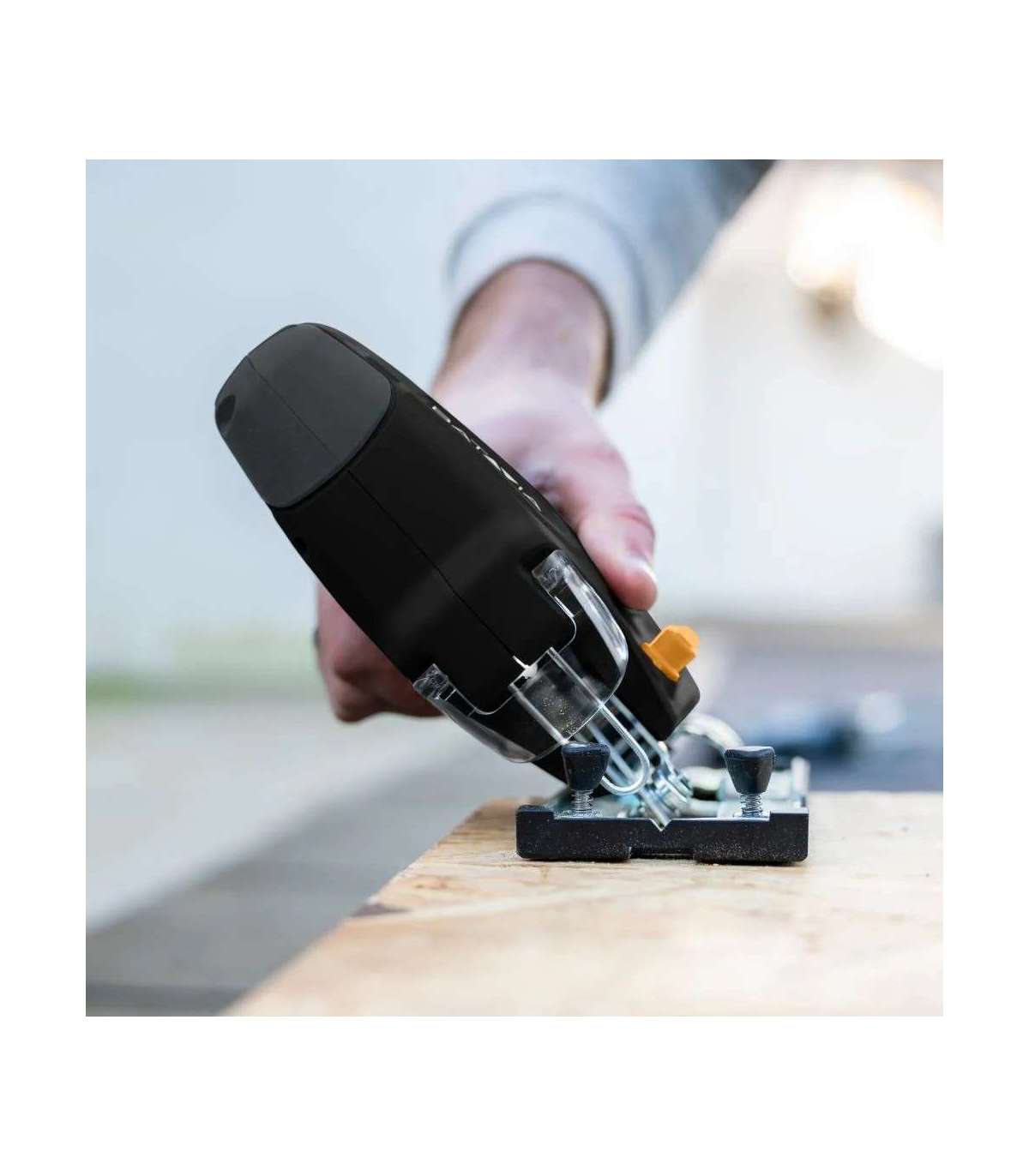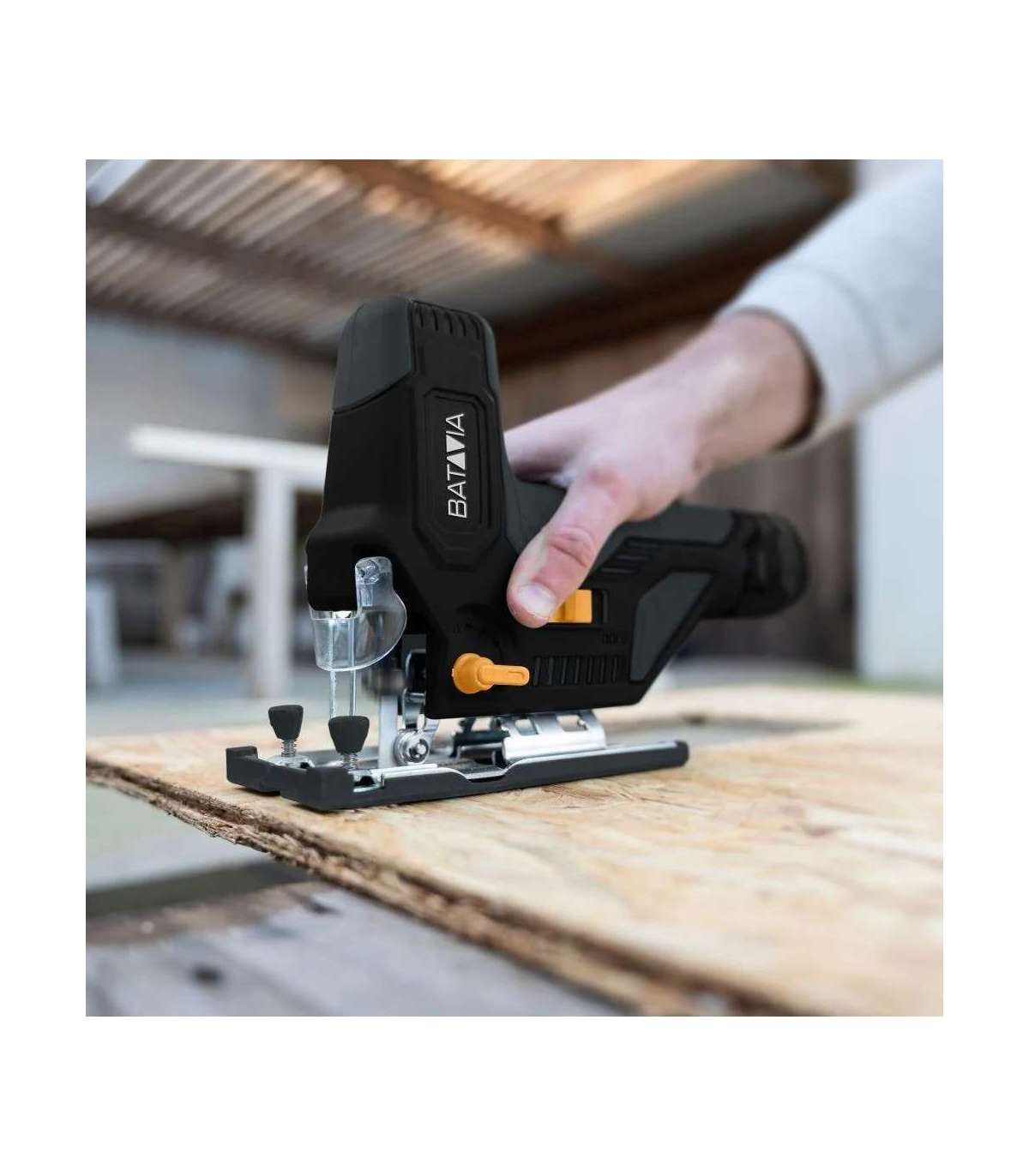 Cut wood, plastic, and metal with one blade; Tilt from -45° to 45° for angled cutting; Choose between fast cuts or smooth curves