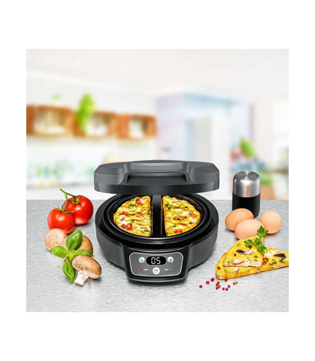 Praktilise omletimasinaga saate kiiresti valmistada kaks mahlast omletti hommikusöögiks, brantšiks või peamiseks söögikorraks.
