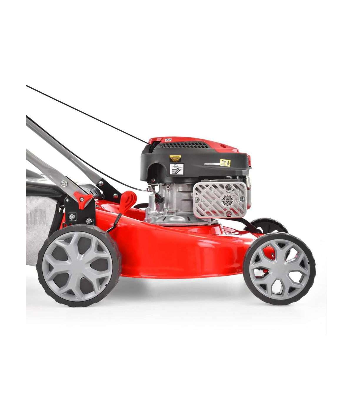 Niitmislaius 46 cm, niitmiskõrguse reguleerimine 25-75 cm. Tugev metallist korpus. 4-taktiline mootor nimivõimsusega 2,5 kW, töömaht 144 cm3. Maksimaalne pöördemoment 7,8 Nm. Kangast korvi maht 60 l. Kaal 29 kg. Rattad ees/taga 7/8". Kokkupandav käepide hoiustamiseks.