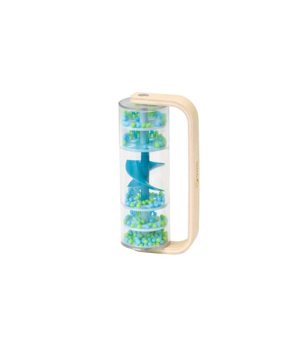 Puit-plastikust sinine vihmamänguasi helmestega kaubamärgilt CLASSIC WORLD, mille voolavad helmed annavad rahustava vihmaheli. Raputa, keera ja keeruta, vaata, kuidas helmed langevad ülalt alla. Ühe kiire liigutusega saad muuta selle mänguasja kädistajaks, mis keerleb 360 kraadi. Suurepärane valik sensoorsuse arenguks. Ideaalne rekvisiit rütmikatundideks!