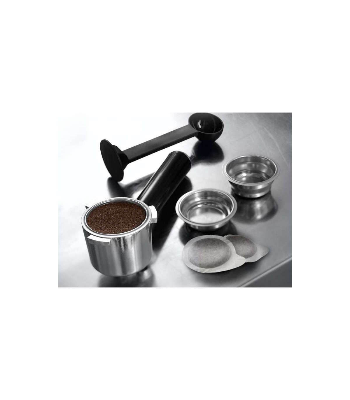 Roostevabasest terasest ja musta mati lakiga kaetud korpusega espressomasin DeLonghi Dedica Style pole mitte ainult ajatu disainiga ja stiilne, vaid võimaldab tänu professionaalsele piimavahustusdüüsile ka väga kvaliteetse cappuccino, Latte Macchiato ja teiste piimaga kohvijookide valmistamist jahvatatud kohvist või E.S.E kohvipadjakestest.