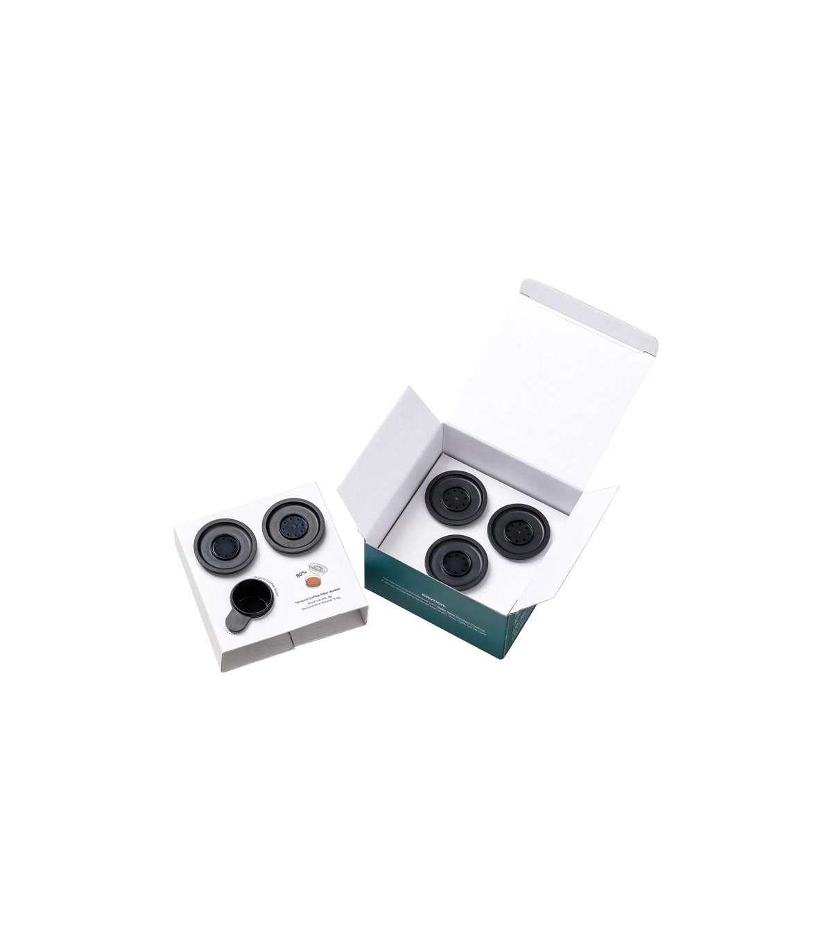 The set comes with a practical measuring cup, which allows you to precisely measure a portion of ground coffee. Its additional function is the ability to whisk the contents in the filter, which contributes to better extraction and a fuller taste of the brew. It is worth remembering that the basic set of accessories - including one filter and a measuring cup - is already included with the Outin Nano coffee maker, so this set is worth choosing when you need more filters to spare.