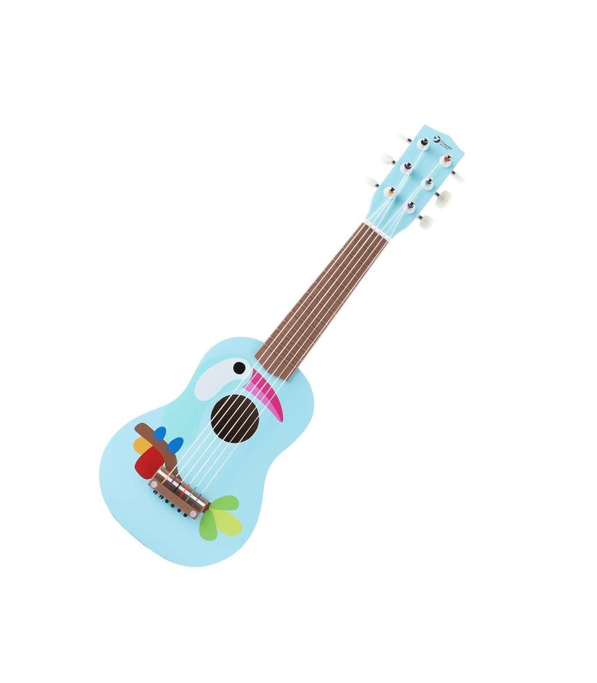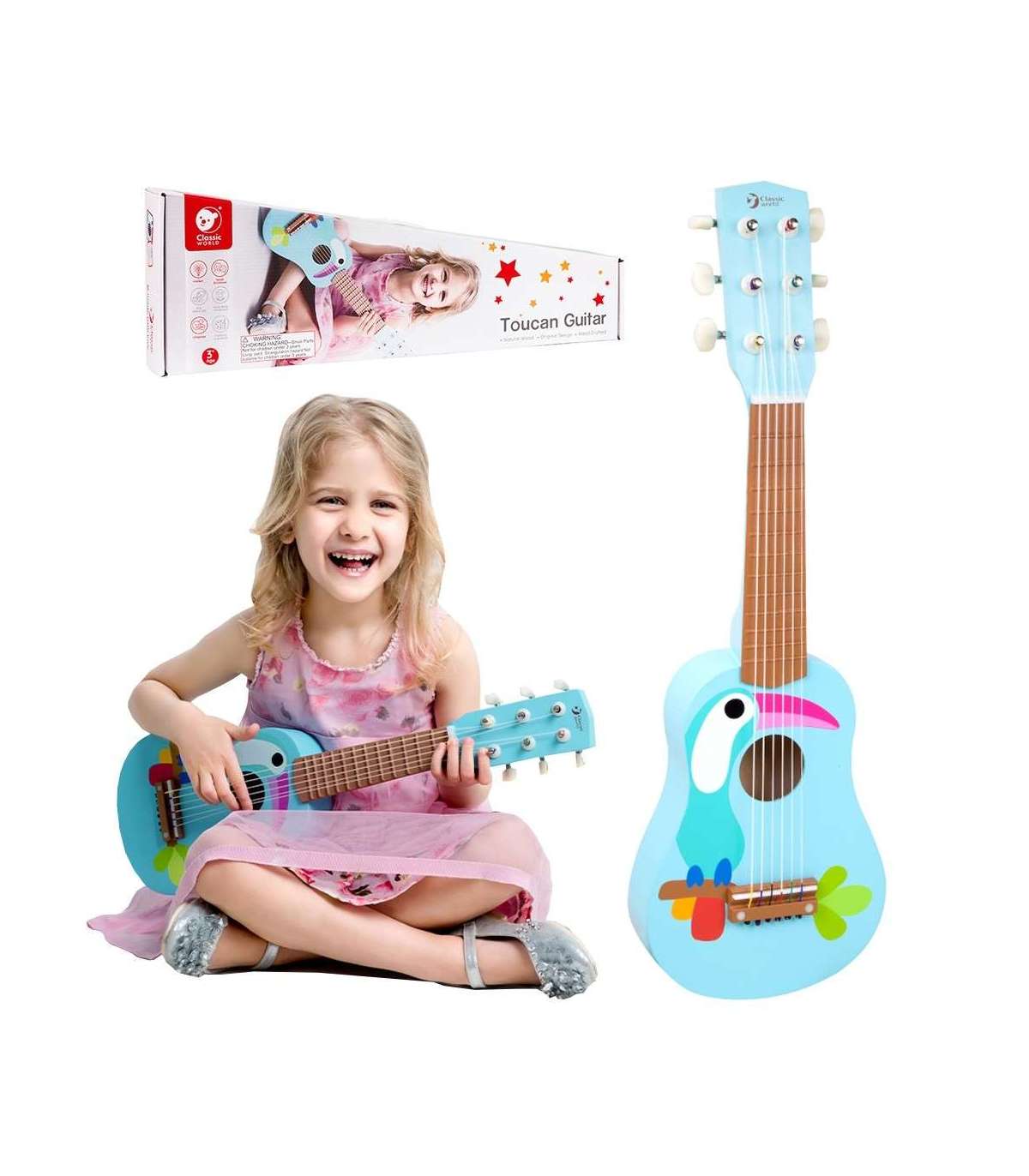 Puidust kitarr mainekalt firmalt Classic World, muusikariist lastele kaunis helesinises värvitoonis tukaani mustriga. Instrument võimaldab omandada esimesi akorde ja, veidi kannatlikkust ja kujutlusvõimet kasutades, esitada kodukontserti. Suurepärane toode esialgsete laste muusikahuvide proovimiseks. Väikesed sõrmed harjutavad kitarikaela mööda liikumist, mis oluliselt parandab käelist osavust, õpetab keskendumist ja visadust. See imiteerib suurepäraselt ehtsat instrumenti. Tõeline hitt mängu läbi õppimise kategoorias. Suurepärane toode esialgsete laste muusikahuvide proovimiseks.