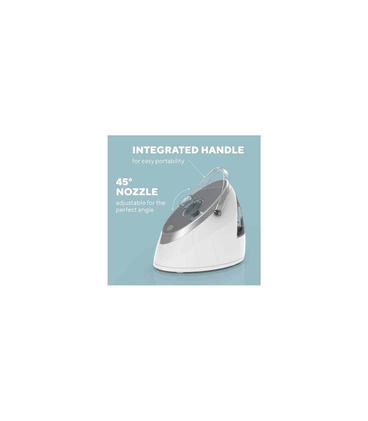 Eemaldatav 70 ml veepaak muudab auruti veega täitmise lihtsaks. Udu temperatuur on umbes 43°C. Võtke see endaga kaasa, teie Nano Facial Steamer on hõlpsaks kasutamiseks varustatud sisseehitatud kandurihmaga.