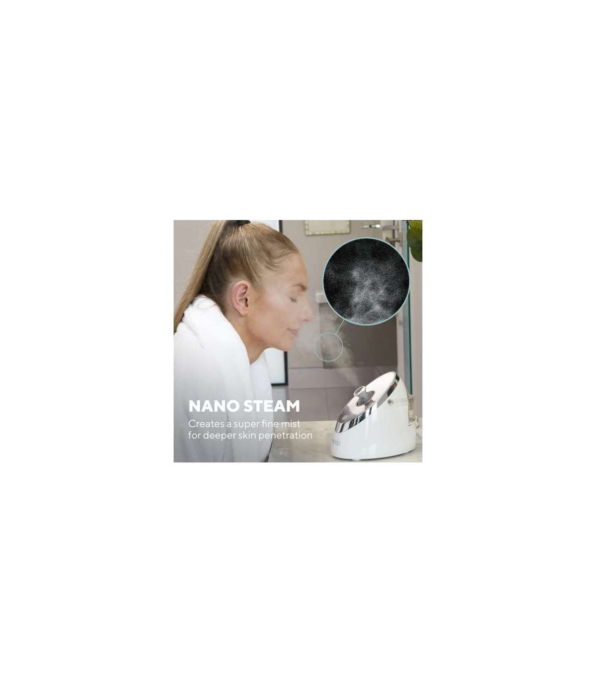 Tavaaurust peenem, nanosuuruses auruosakesed tungivad sügavamale naha välimisse kihti, avades poorid. Pooride avanemine pehmendab sageli tedretäppe, muutes nende eemaldamise lihtsamaks. Samuti saate oma uue Nano Facial Steameriga saavutada nahahooldustoodete parema imendumise. Selle elegantne disain teeb kompromissiks kompaktse, kaasaskantava ja hõlpsasti eemaldatava reisirihmaga põhiseadme, mis muudab HoMedics Nano Facial Steamer uuenduslikuks uuenduseks võrreldes traditsiooniliste näoaurutitega. Sobib kõikidele nahatüüpidele. Olge oma Nano Facial Steameri kosmeetilise peegelpaneeliga täpne.