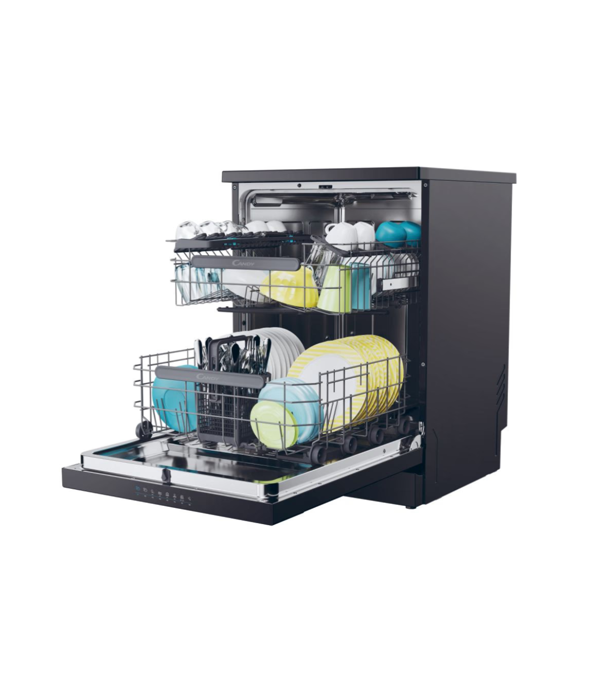 Dishwasher | CF 5C6F0B | Free standing | Width 59.7 cm | Number of place settings 15 | Number of programs 8 | Energy efficiency class C | Display | Black